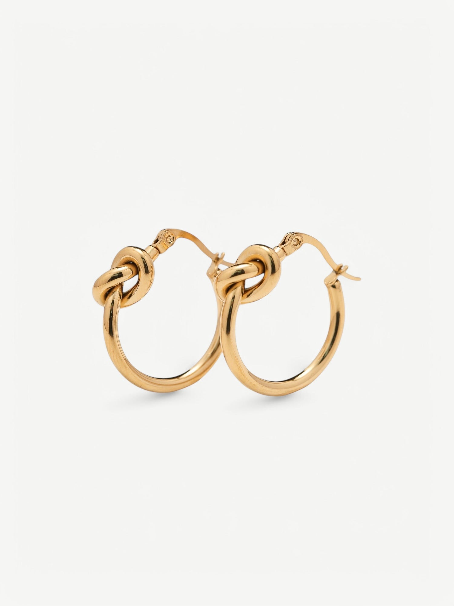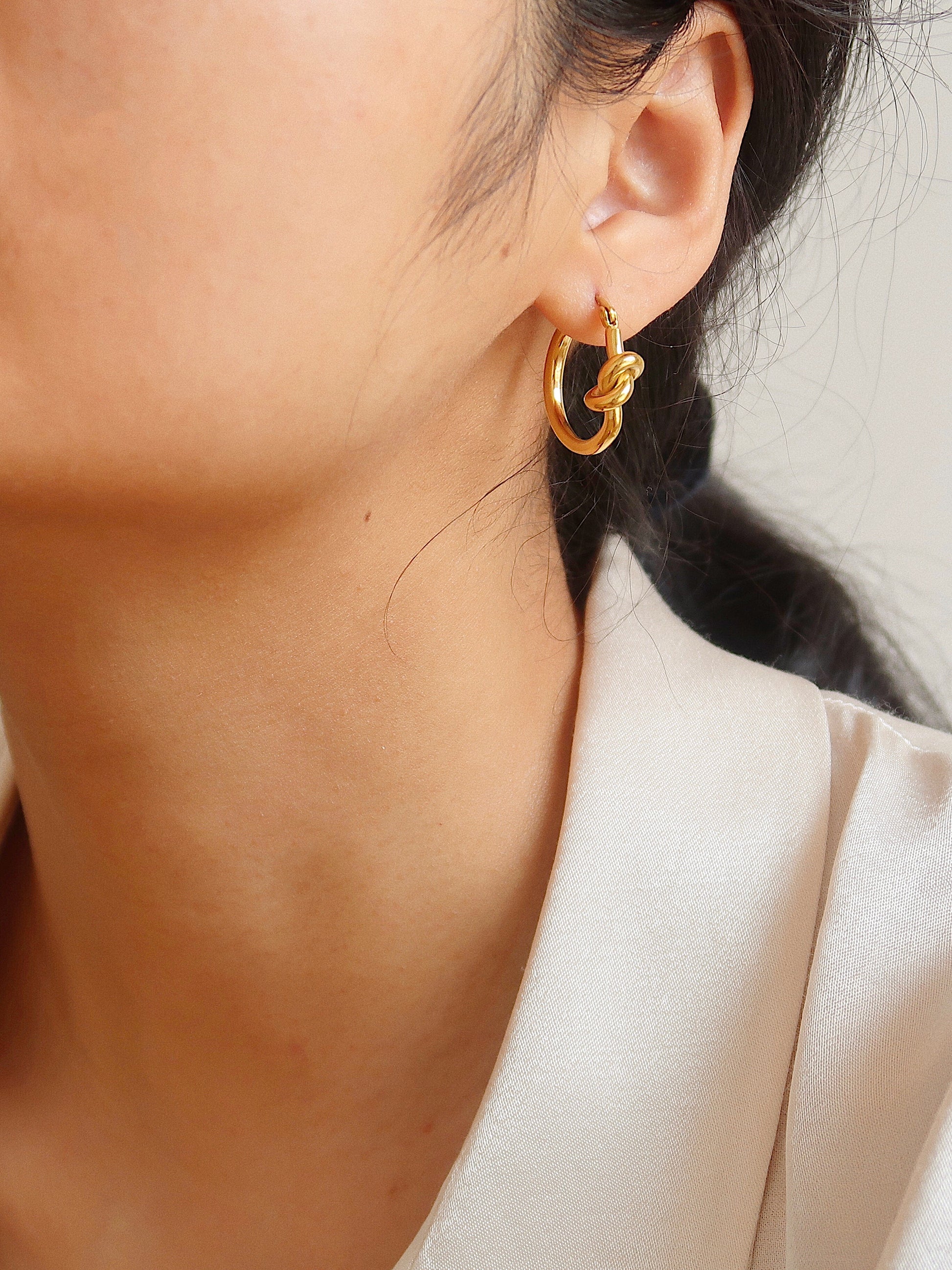 Unlock the beauty of everyday with these 18K gold plated Ashley Knot Hoops. Featuring a simple knot design, these stylish hoops are easy to wear and a must-have for any occasion. Elevate your jewelry collection with these must-have hoops!