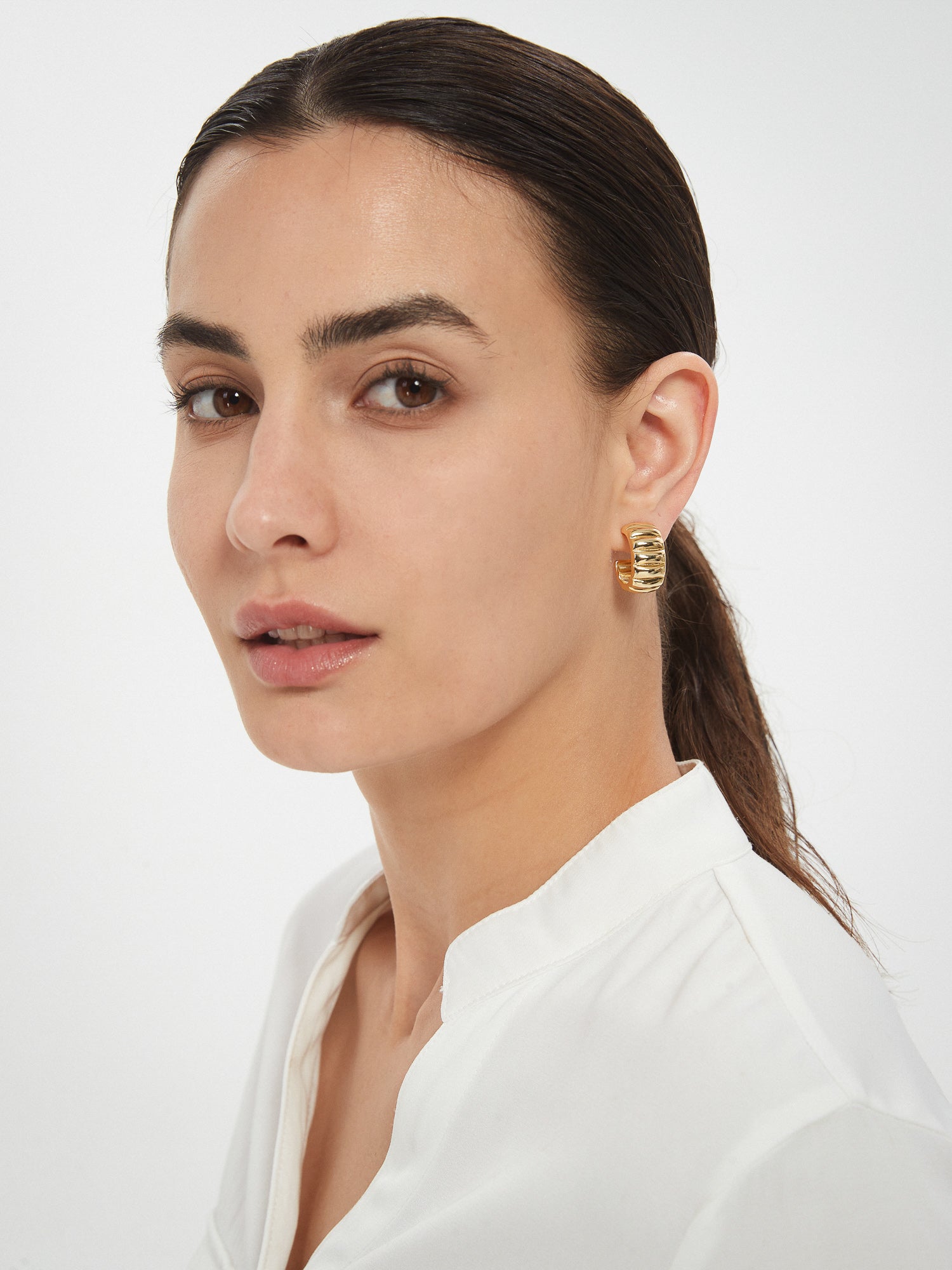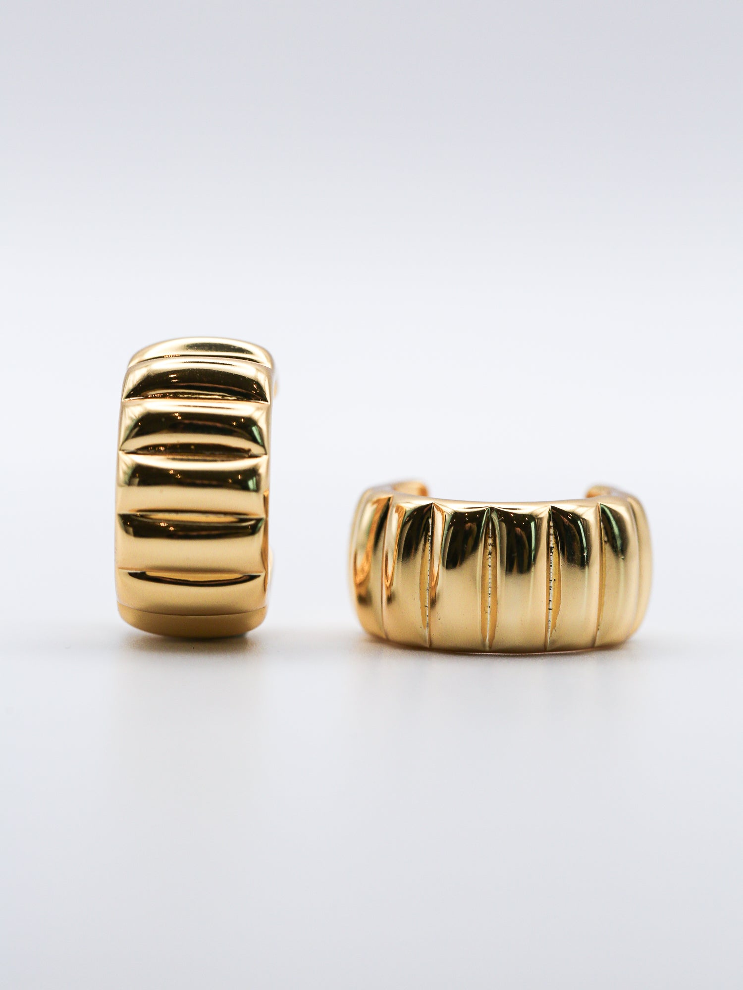 Indulge in everyday luxury with our Bold Ribbed Hoops Earrings. Crafted from high-quality 18k gold plating, these stylish hoops are lightweight and modern, making them a must-have for any fashion-forward individual. Elevate your everyday look with these timeless and versatile earrings!