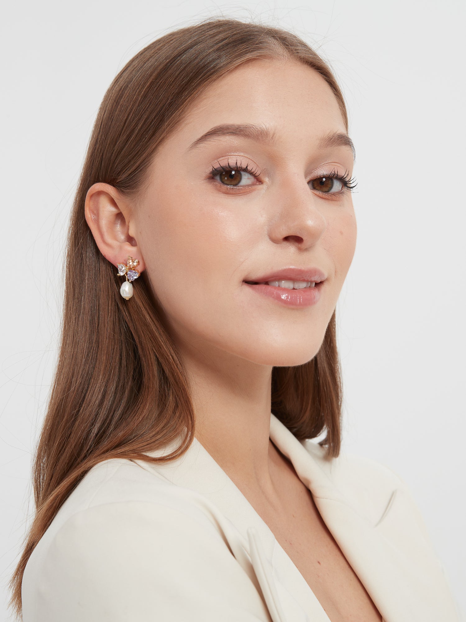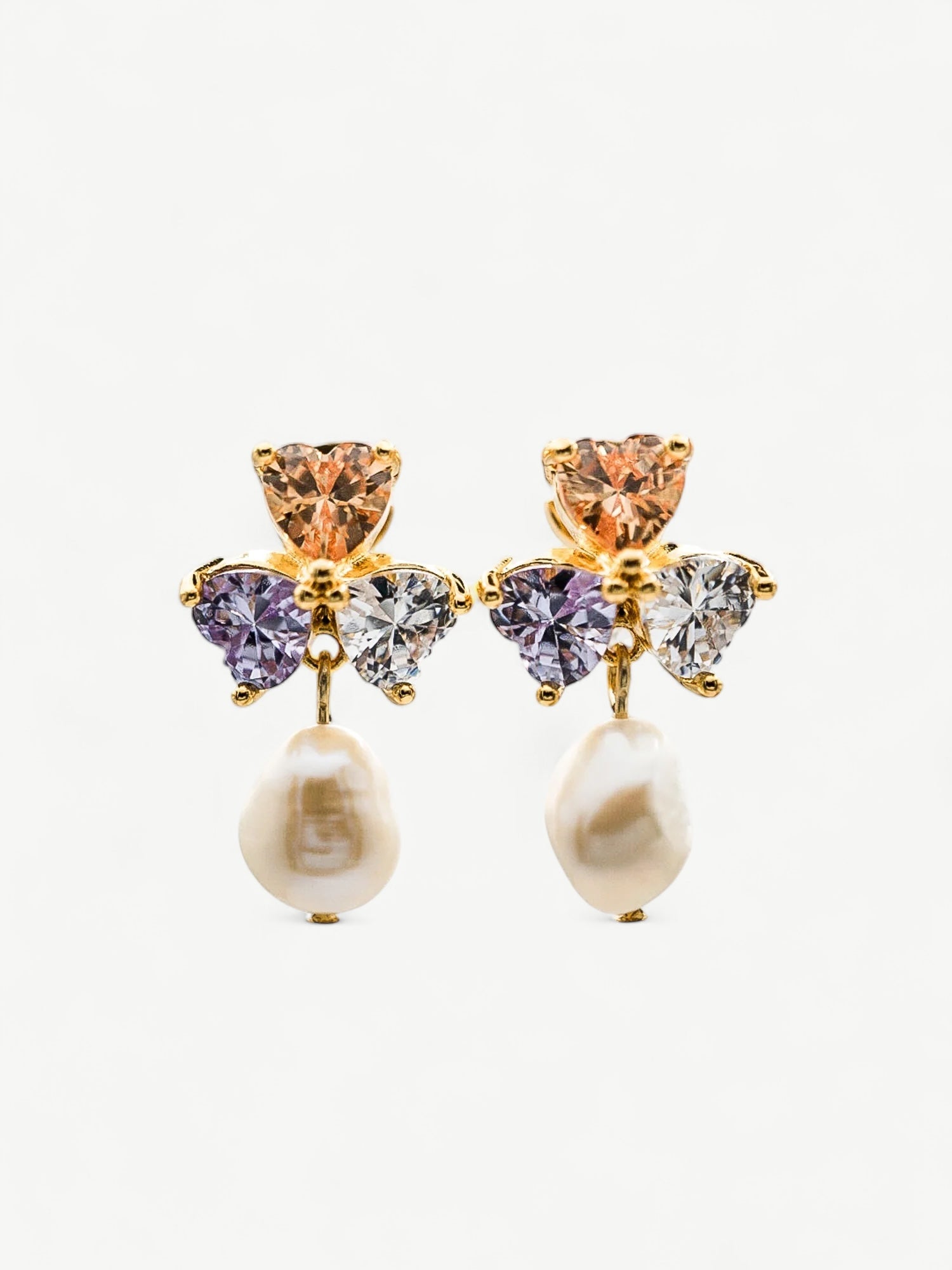 Experience an irresistible combination of glam and femininity with these Cecilia Fresh Water Pearl Earrings. Crafted with high quality fresh water pearls and three heart shape cubic zirconia set in a 18K gold plating, these earrings will take your look to the next level. Delicate yet detailed, these fashion-forward earrings will add a hint of classic elegance to any look!
