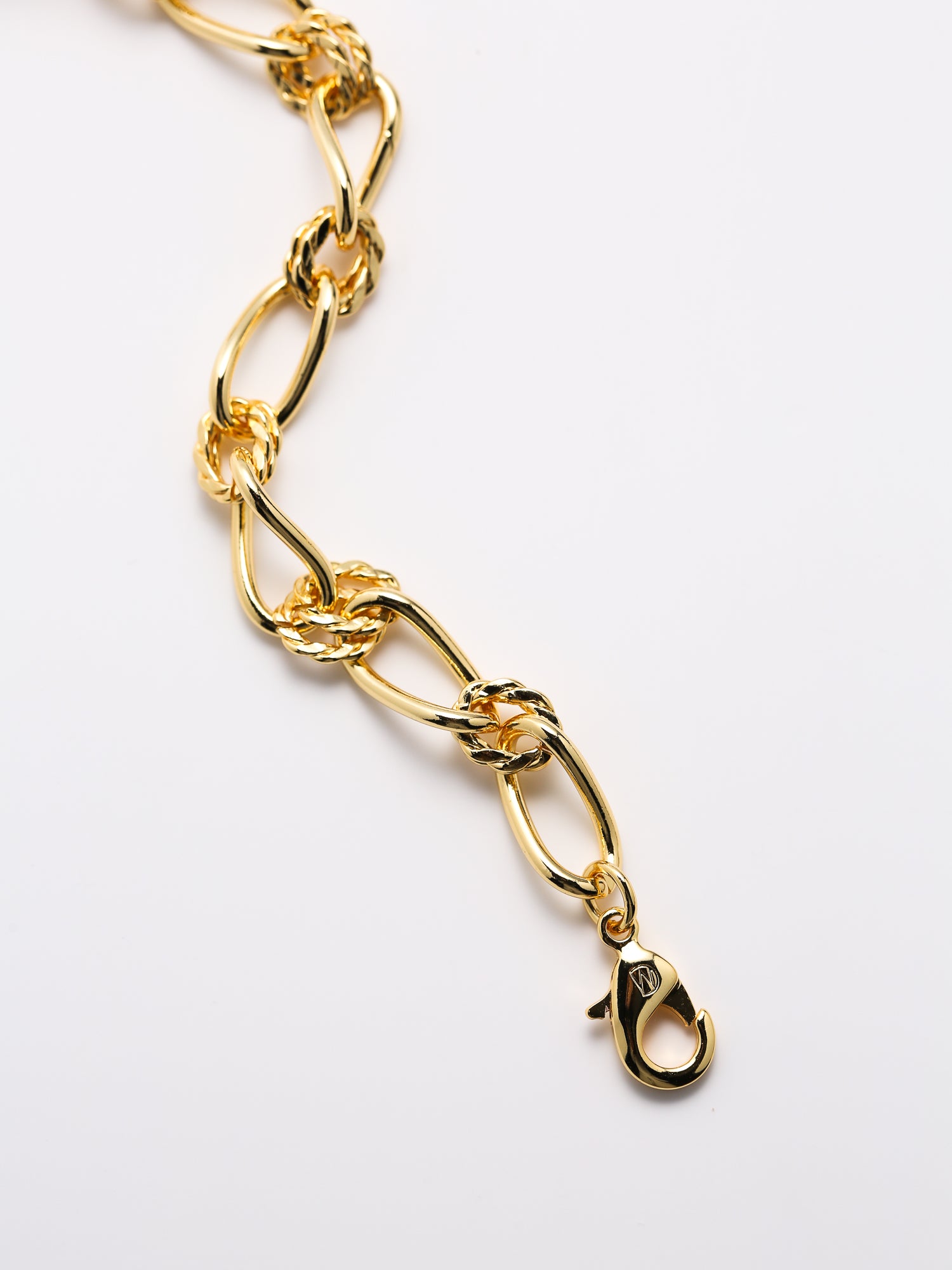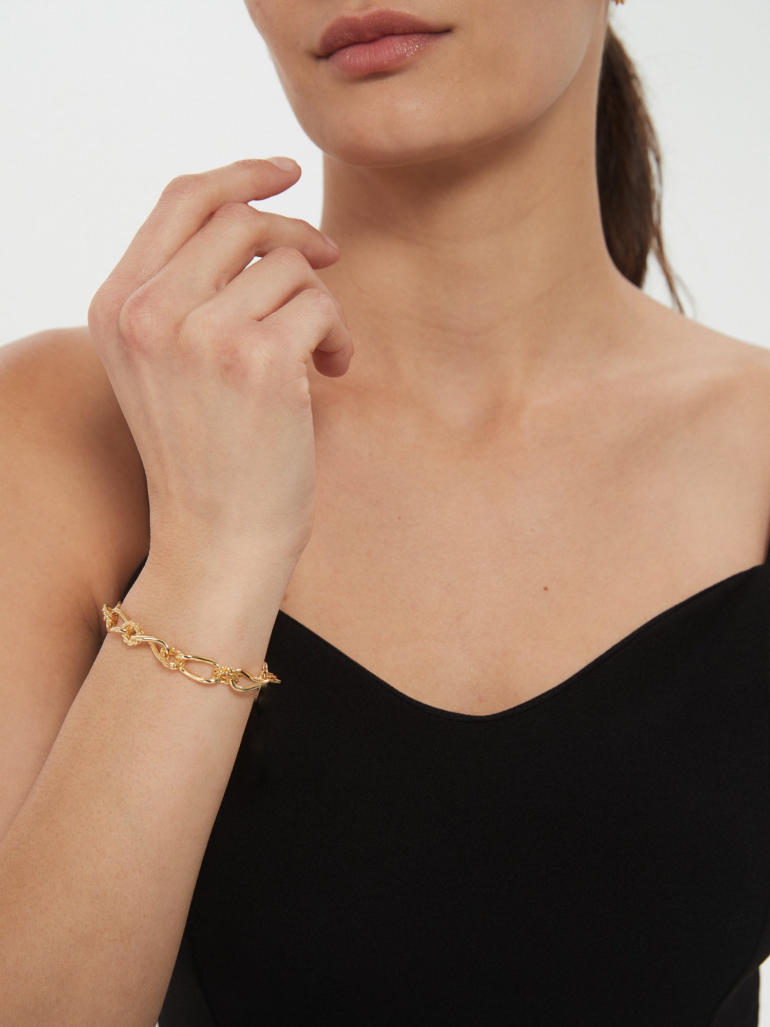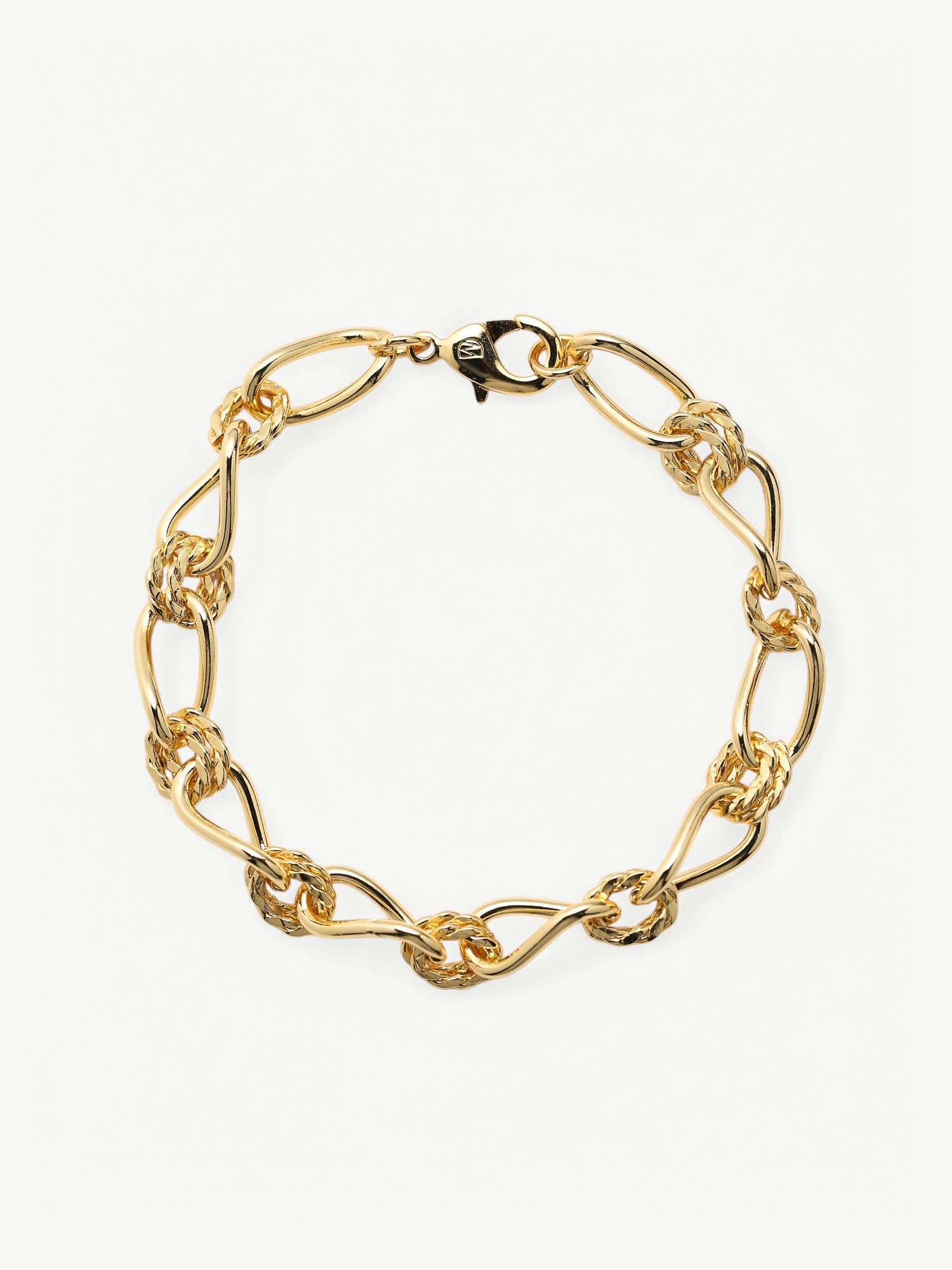 Expertly crafted with 18k gold plating, this Chunky Twisted Chain Bracelet features a modern twist design with elongated oval links. Its fashionable and decent chain size ensures comfortable wear, making it perfect for stacking with other bracelets or wearing alone. Elevate your style with this timeless piece.