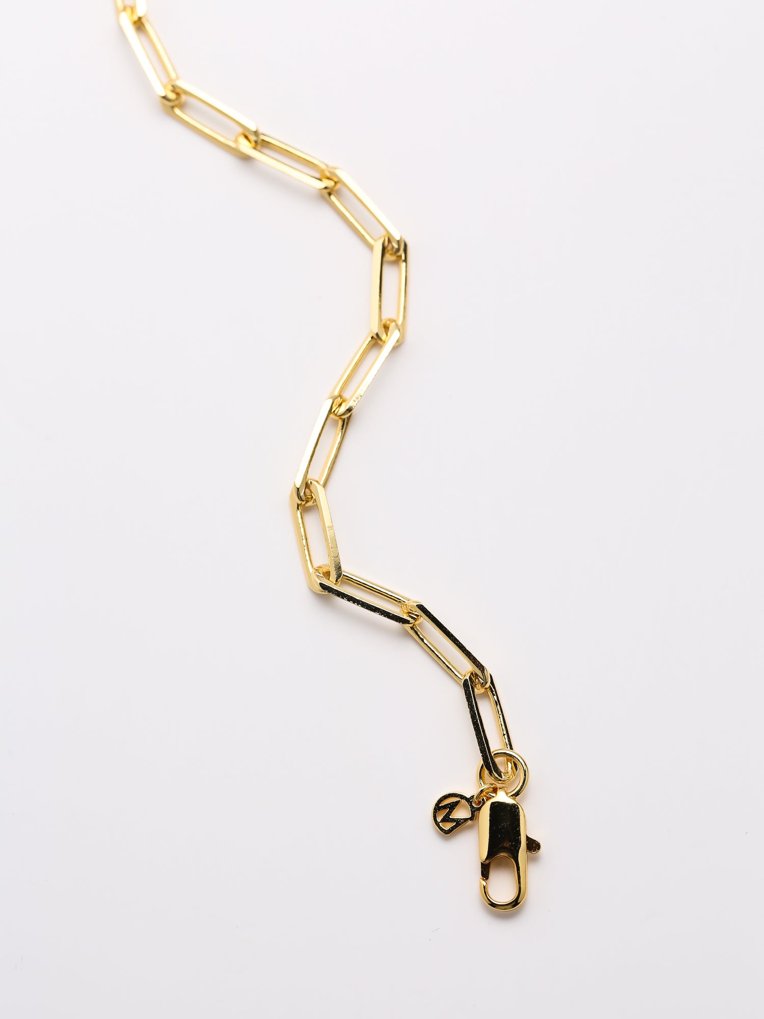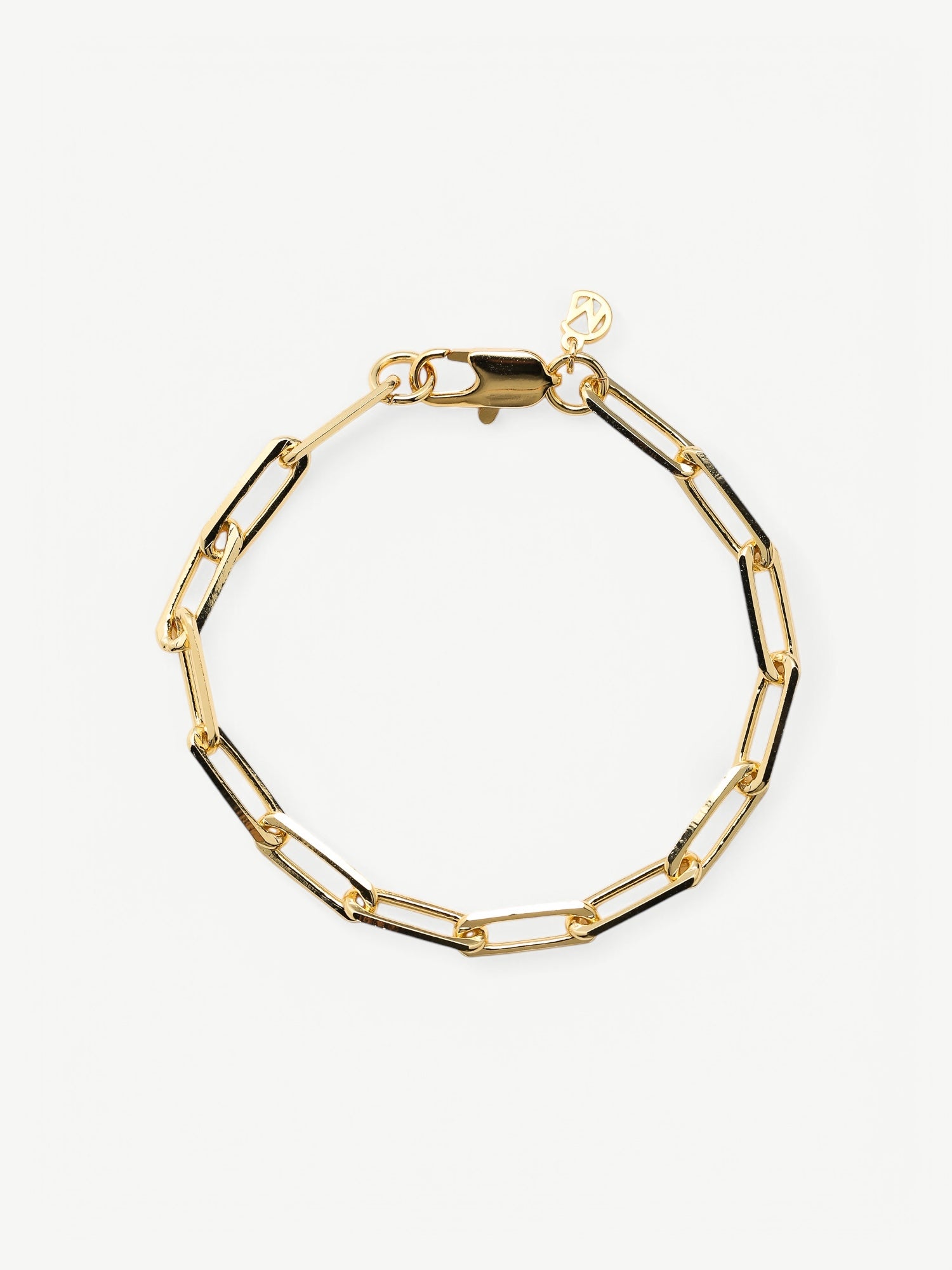 This Classic Paperclip Chain Bracelet boasts a delicate yet durable design featuring elongated links for a modern minimalist look. 5mm is a great width for an elegant but chic look. The high shine gold finish adds a touch of luxury, while the secure lobster clasp with subtle charm detail ensures a secure fit. Versatile and timeless, this bracelet is a must-have addition to any jewelry collection.