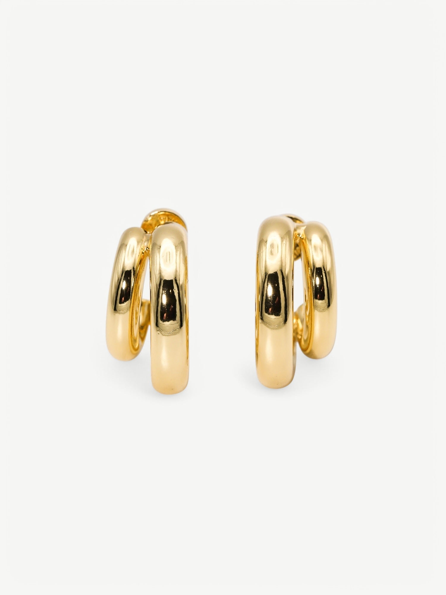 These 18k gold double hoop earrings feature a modern design that is sure to make a statement. The slightly chunky hoops add a touch of boldness to any look, making them a must-have for any fashion-forward individual. Elevate your style with these unique and eye-catching earrings.