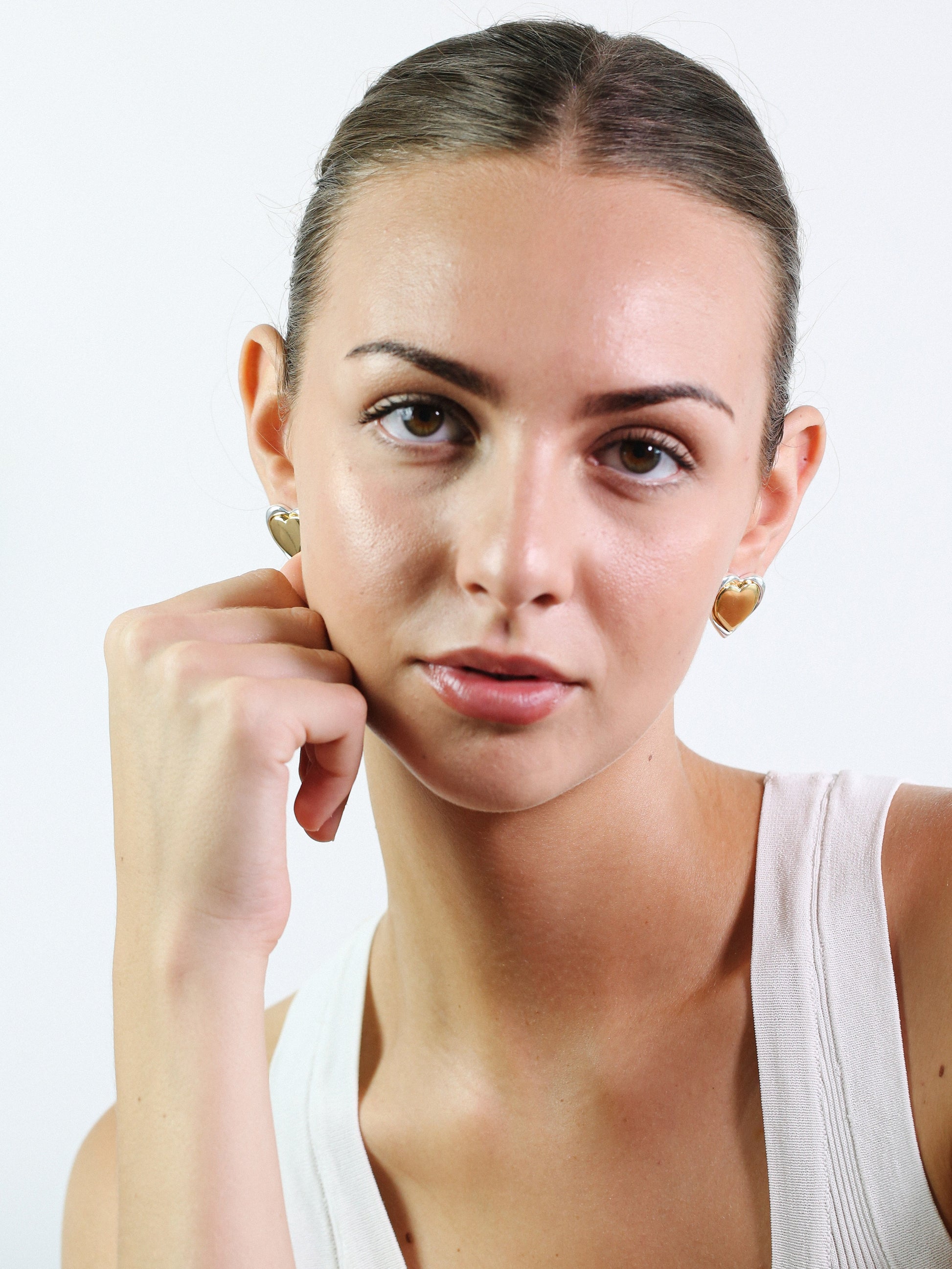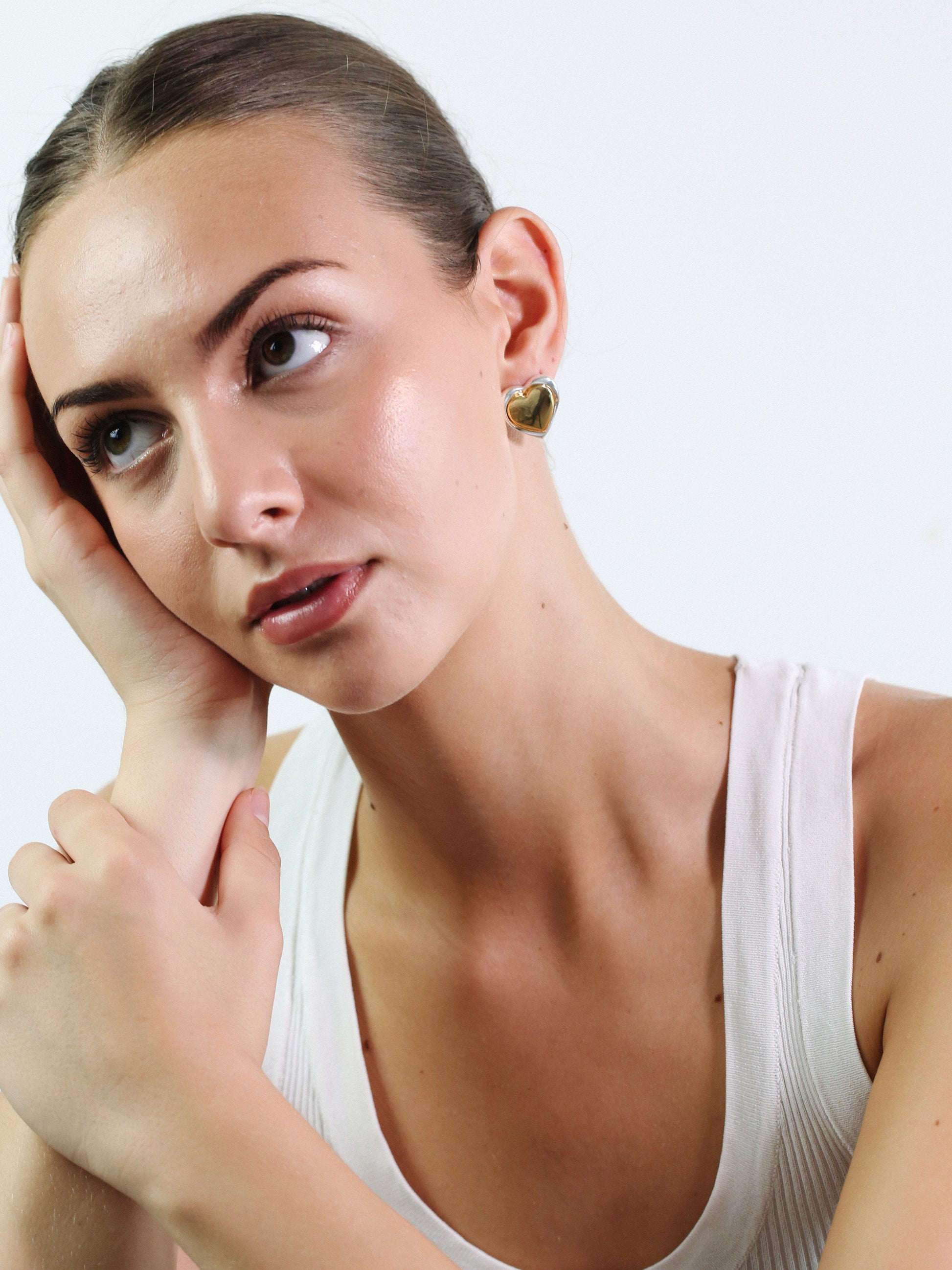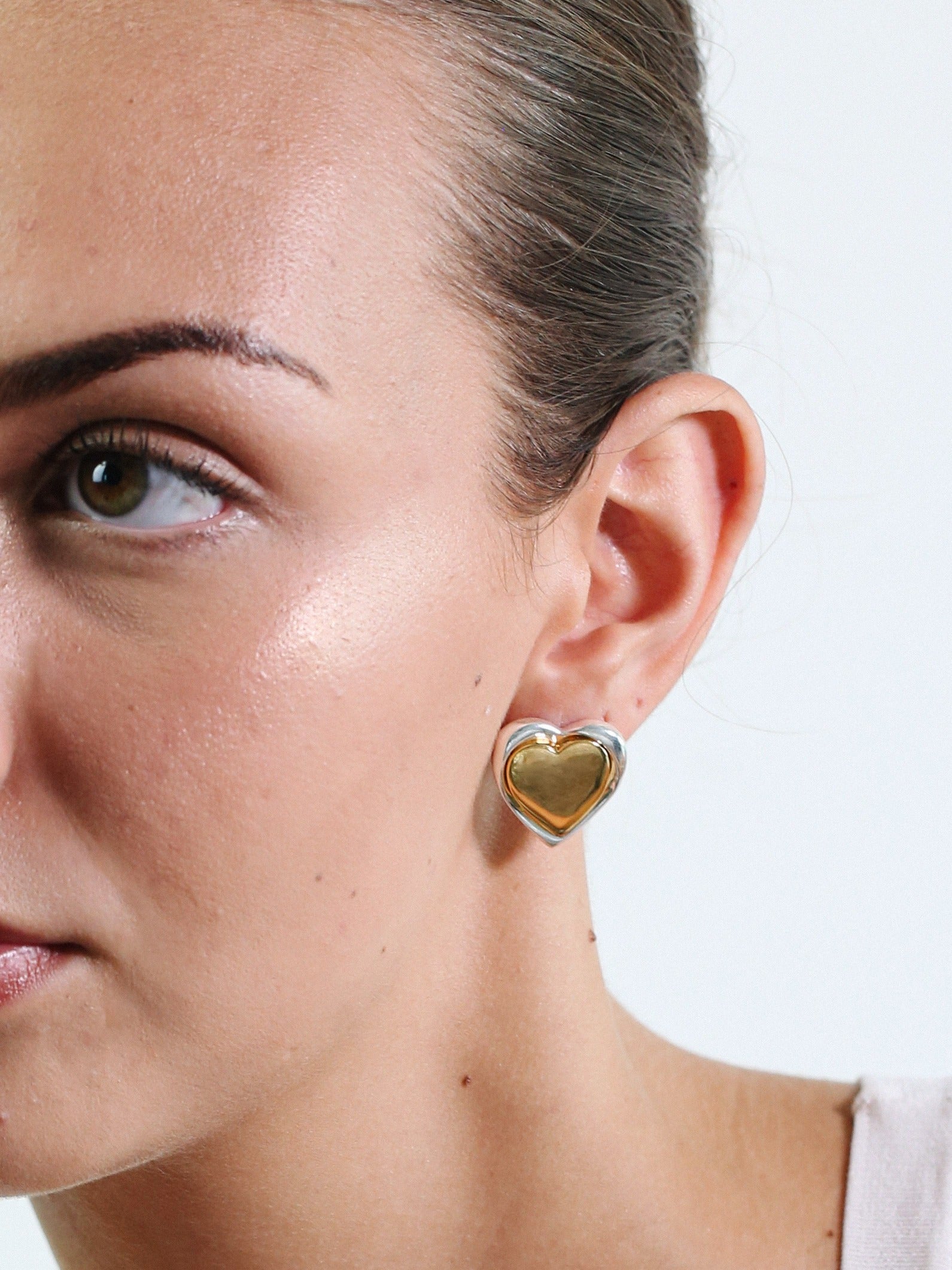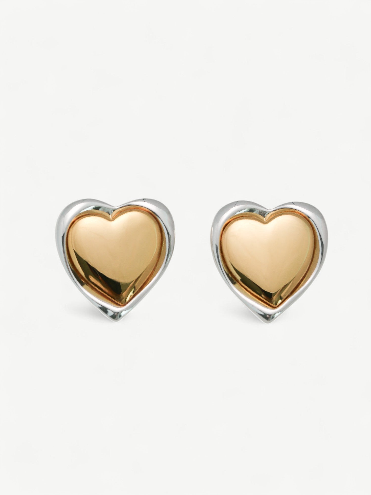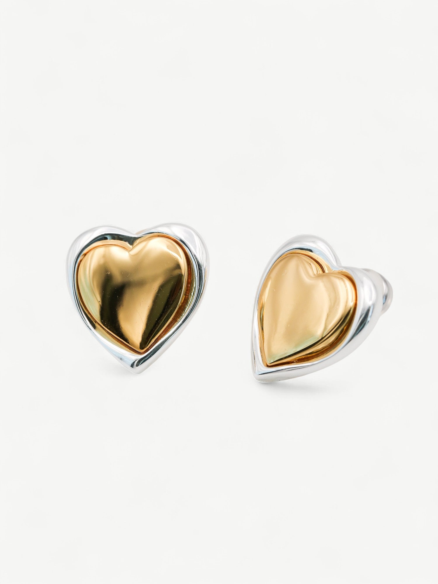These Double Tone Heart Ear Studs combine a sophisticated gold and silver finish with a sculptural pop art design, creating a playful yet refined accessory. Their unique dual-tone effect catches the eye, making them perfect for adding a subtle statement to any outfit while showcasing expert craftsmanship.