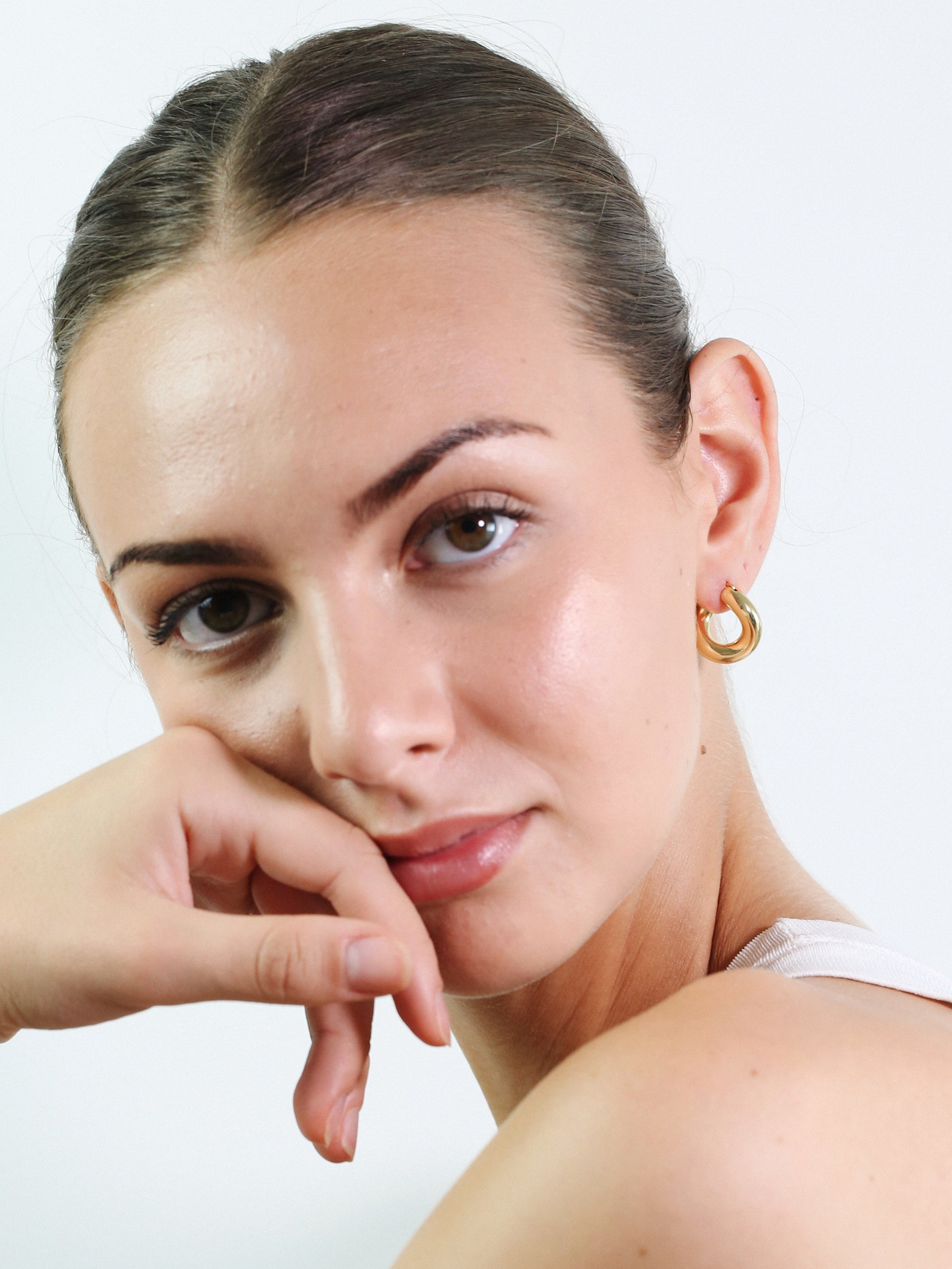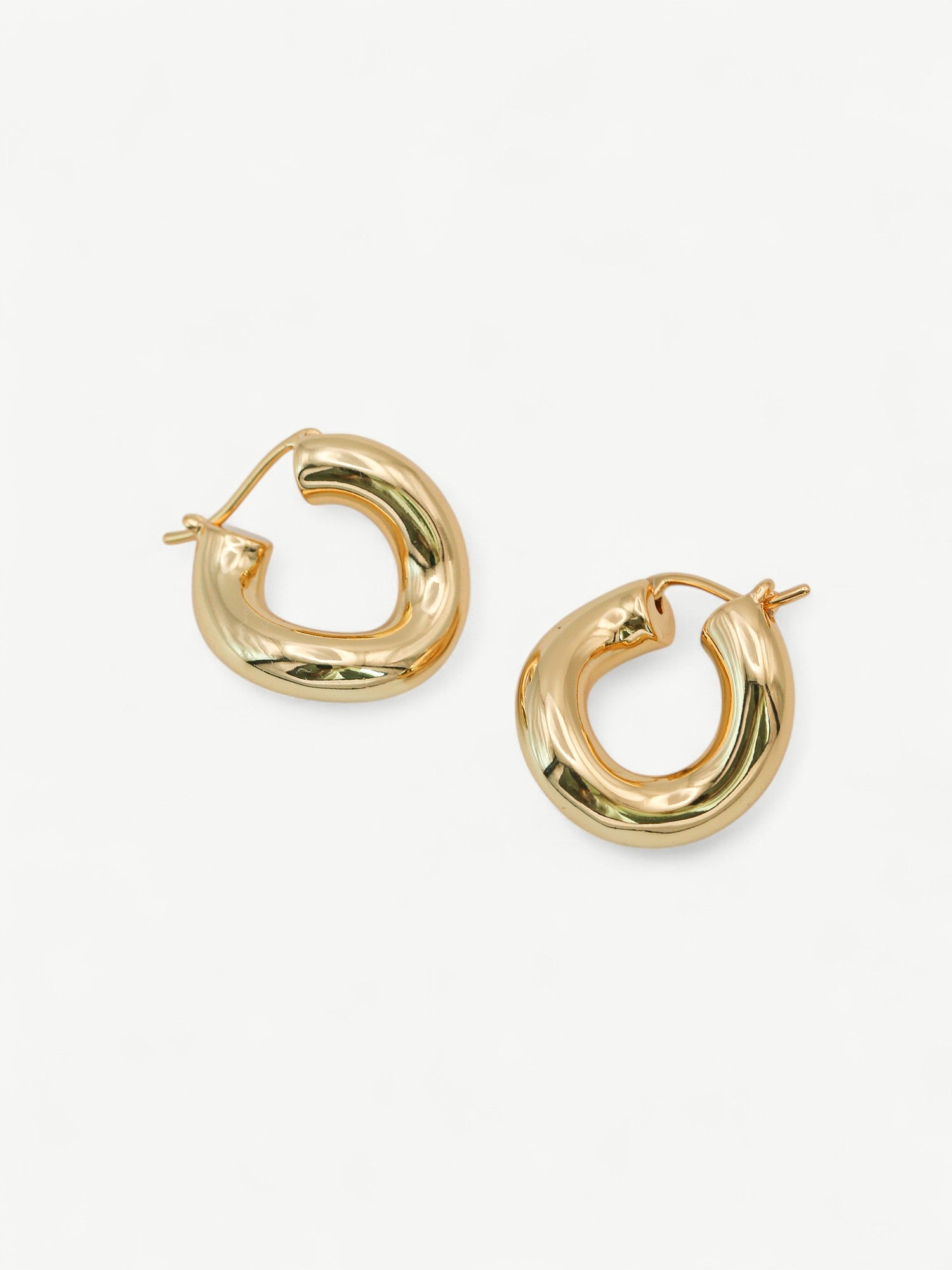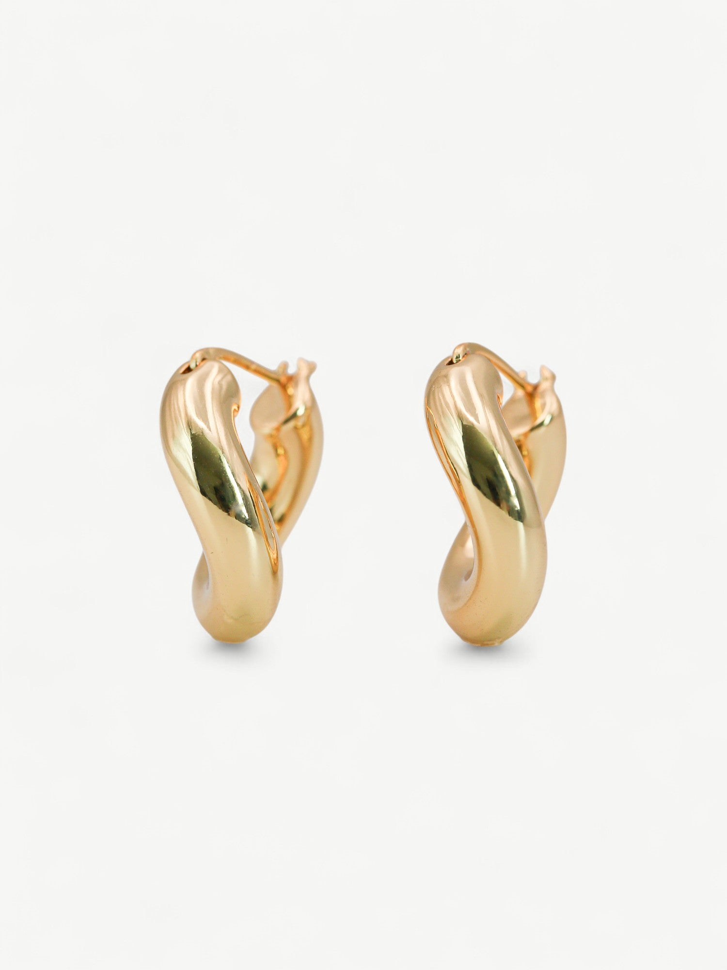 Elevate your style with the Drift Hoops, expertly crafted in 18ct gold plating over durable brass. Their sleek, modern twist design offers a refined yet contemporary look, making them an ideal accessory to complement any modern outfit with understated elegance.