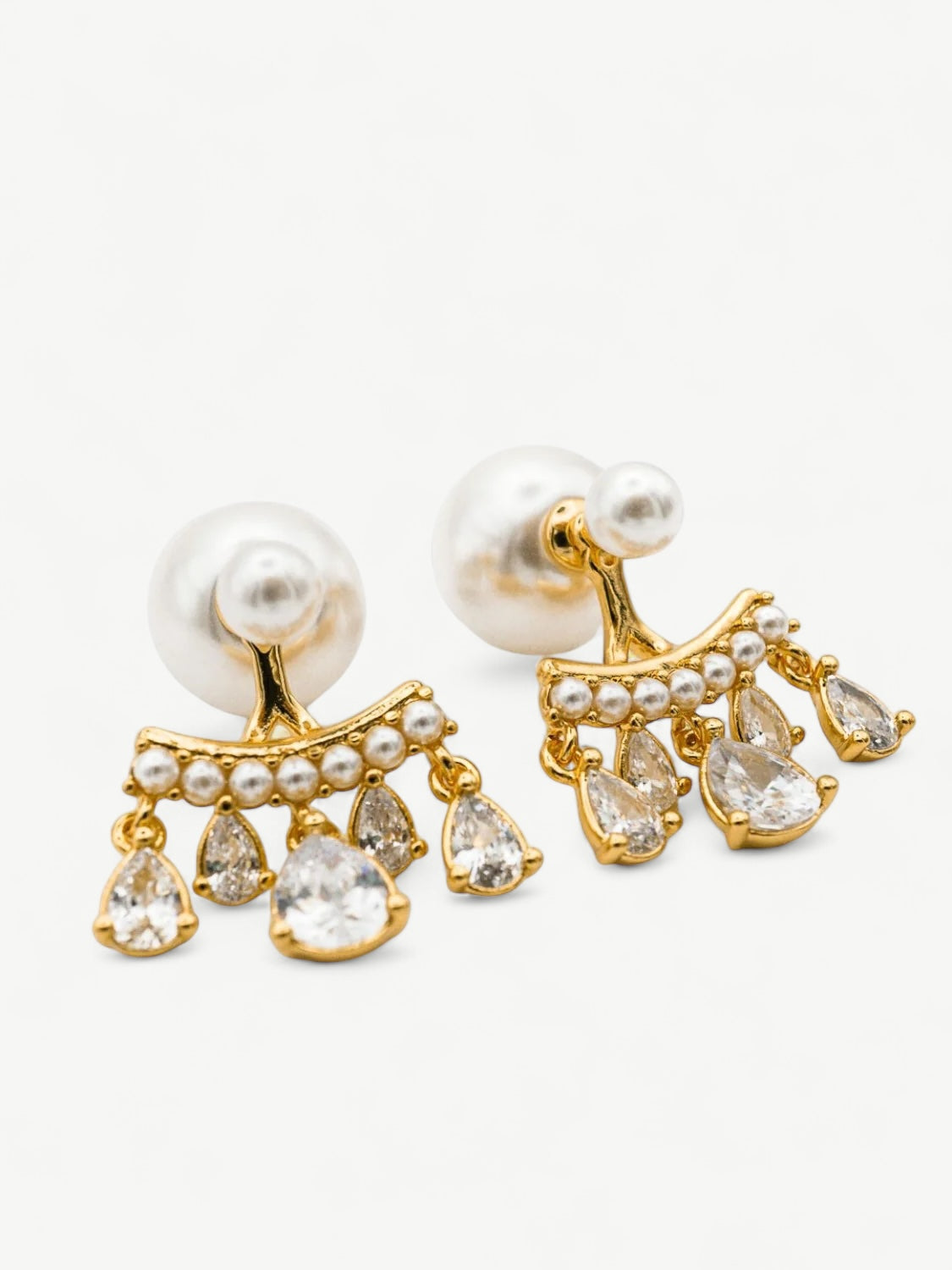 All of our products are made of 18K gold plated or white gold plated on Brass. Our gold plating thickness is more than 2.5 microns which means our products can last for years.You get the look & feel of gold jewellery without a hefty price tag. We also use natural pearls and faux pearls. High quality faux pearls are not cheaper than natural ones, we use them to satisfy certain designs that natural pearls can't do.