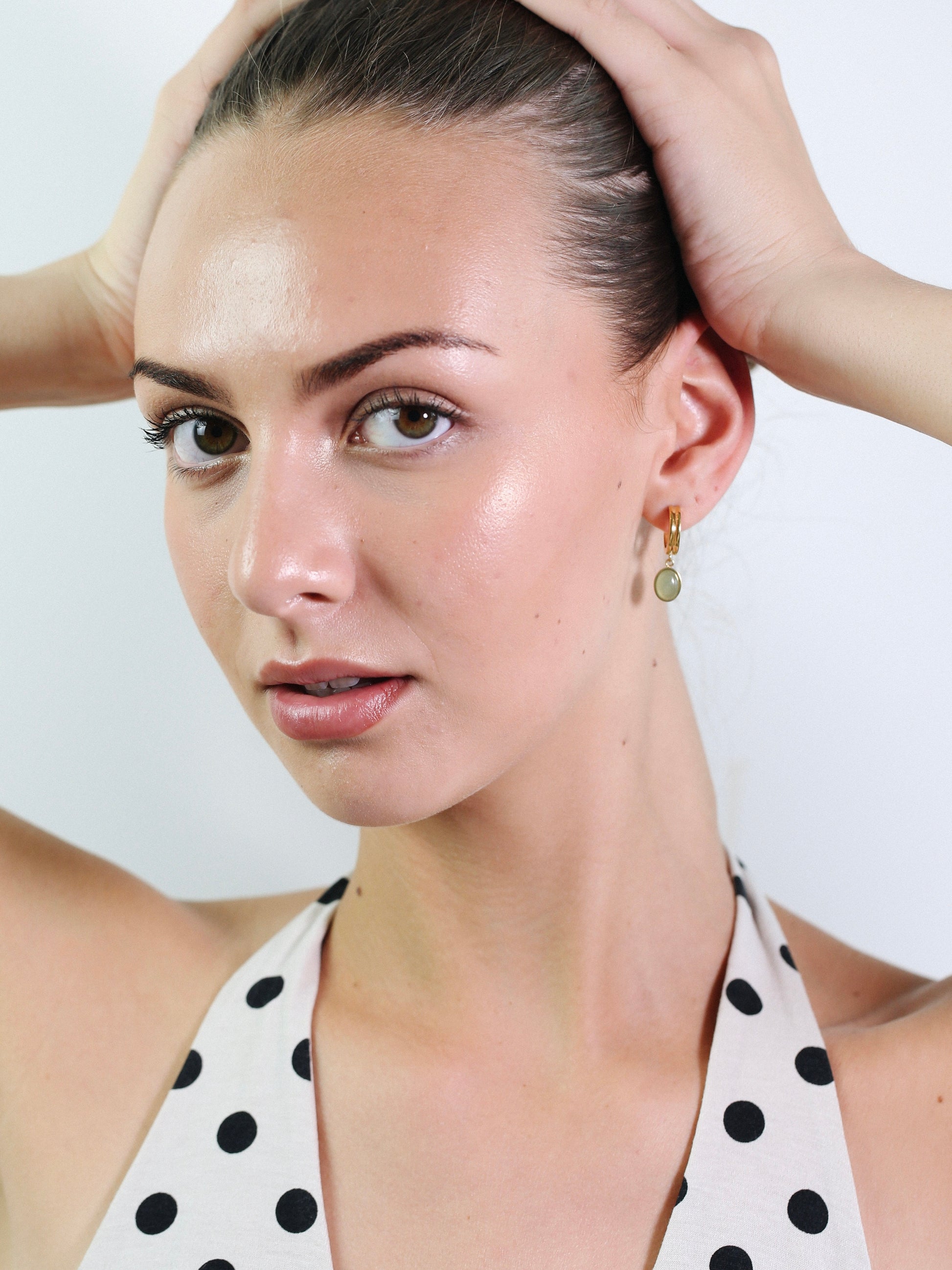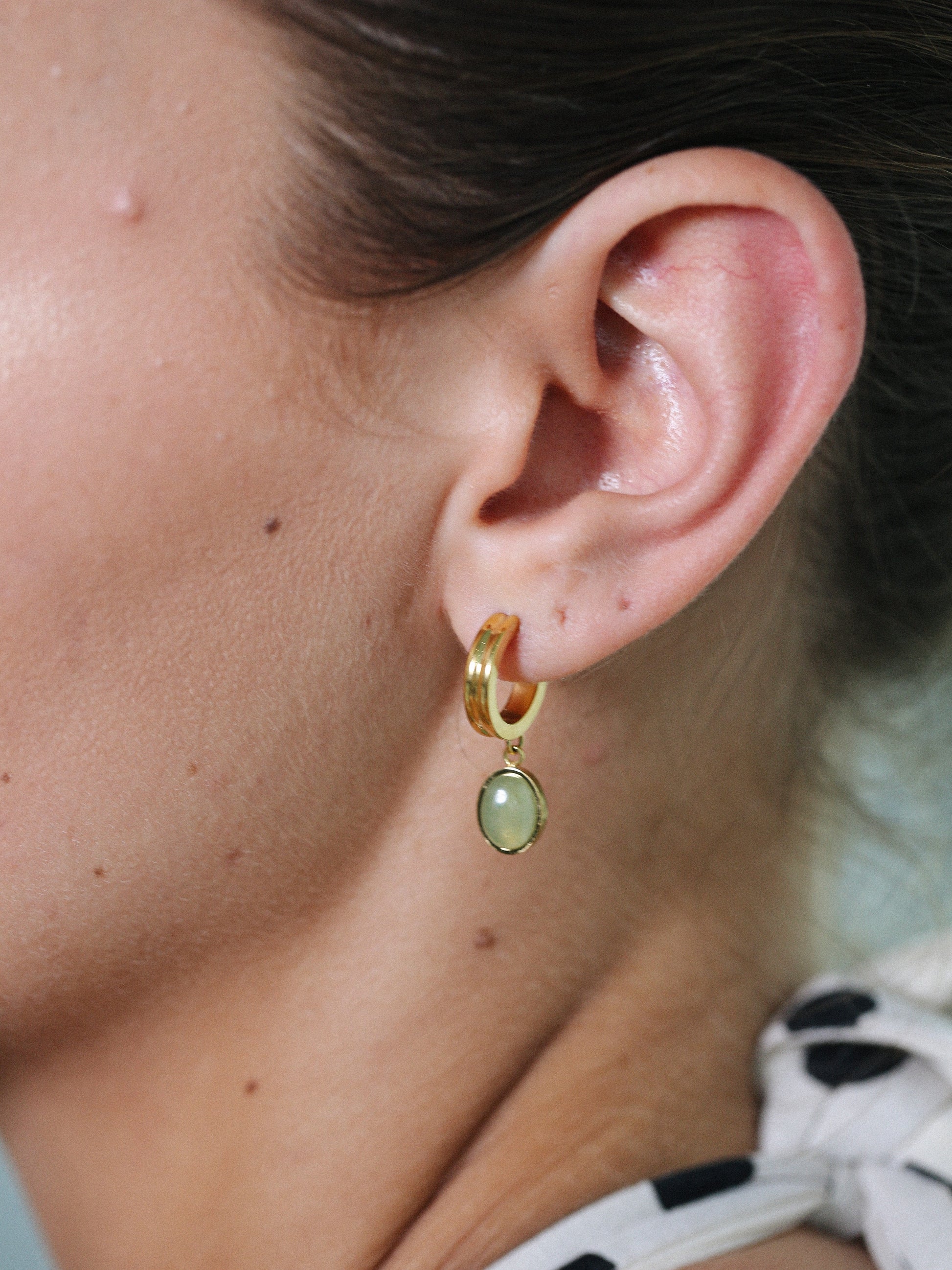 Expertly crafted with 18ct gold plated stainless steel, these Emerald Small Hoop Earrings feature beautiful emeralds that add a touch of elegance to any outfit. The perfect size for everyday wear or special occasions, these earrings are a must-have for any jewelry collection.