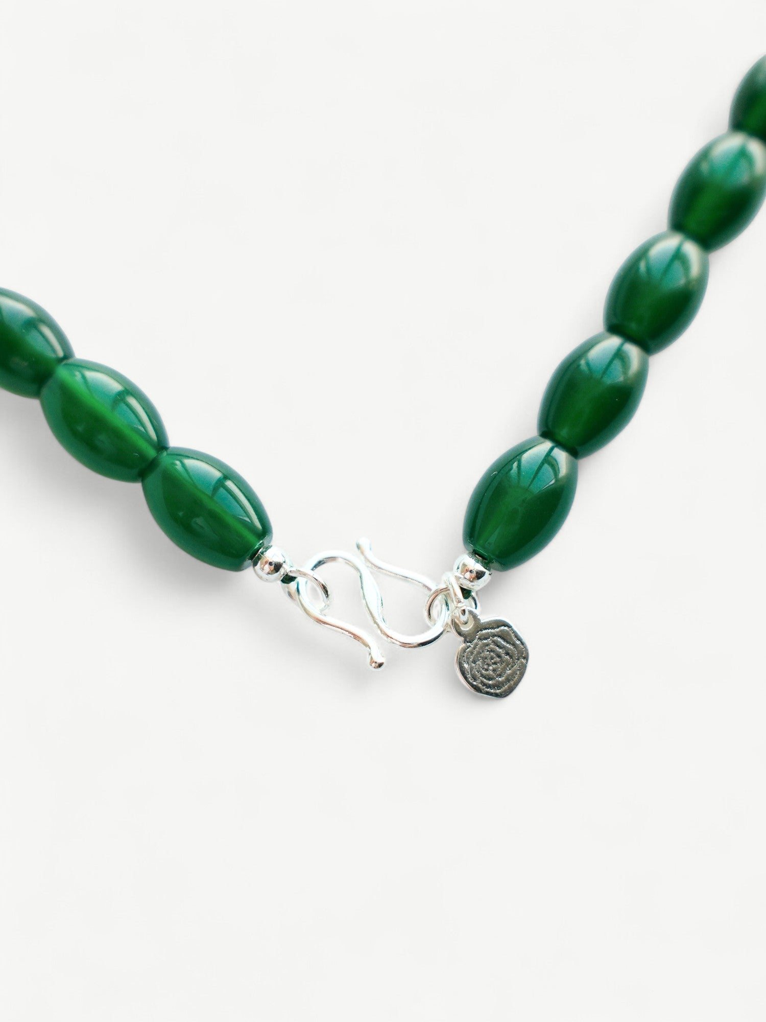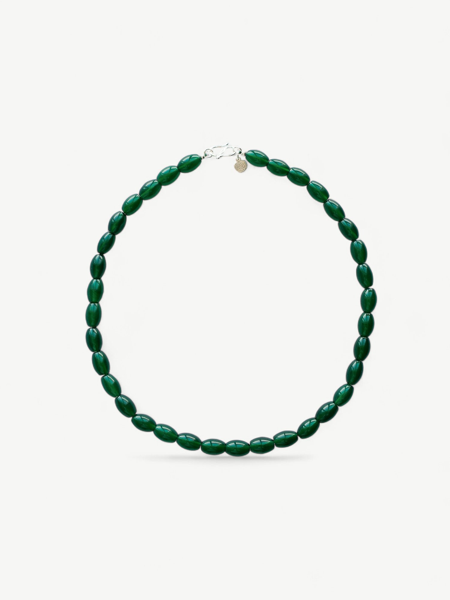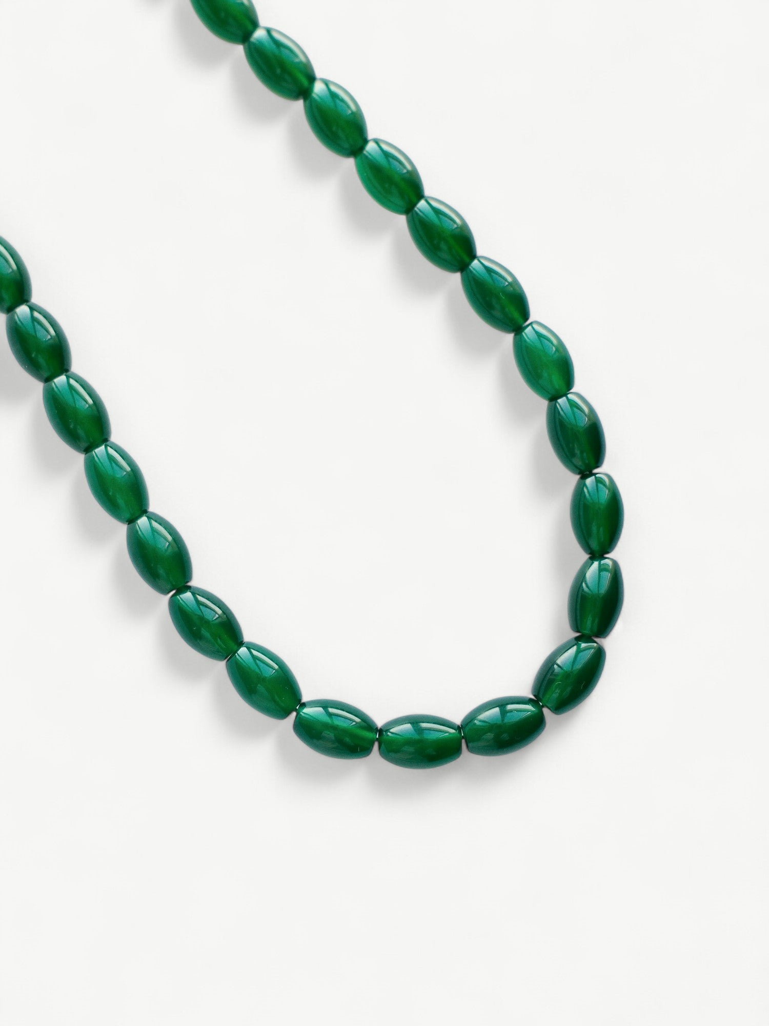 Inspired by the serene beauty of the forest, this necklace features smooth, oval beads in a deep lustrous green reminiscent of natural agate. Strung with care and finished with a delicate clasp, it pairs seamlessly with a simple white tee for a modern, minimalist look or complements any holiday outfit, adding a subtle yet sophisticated touch of color. Ideal for elevating everyday wear or festive ensembles with ease and style.
