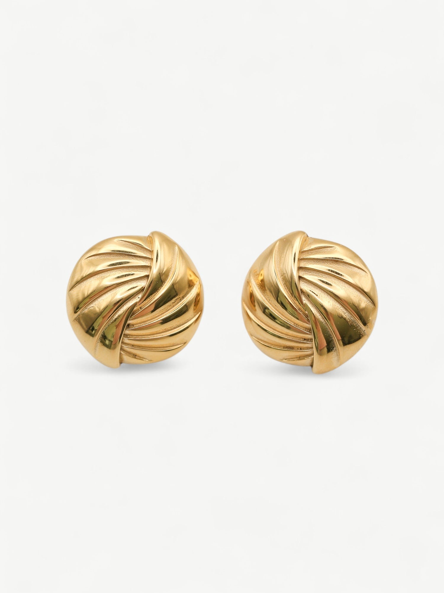 Introducing our Gilded Twist Earrings, the perfect addition to any jewelry collection. These earrings feature a bold twist design that exudes a timeless and sleek aesthetic. Made with 18ct gold plated on brass, they are sure to make a statement and elevate any outfit. Elevate your style with these stunning statement pieces.