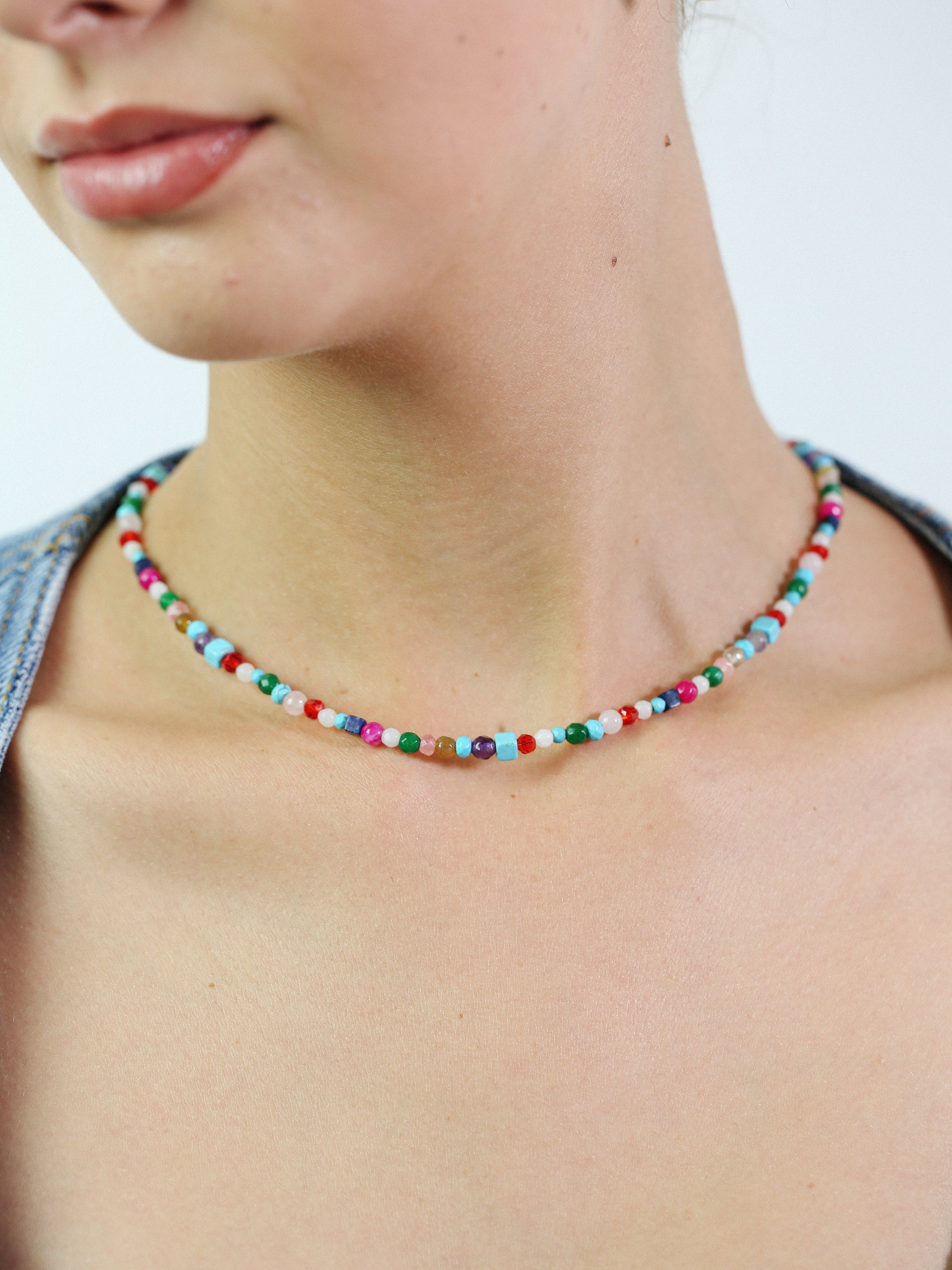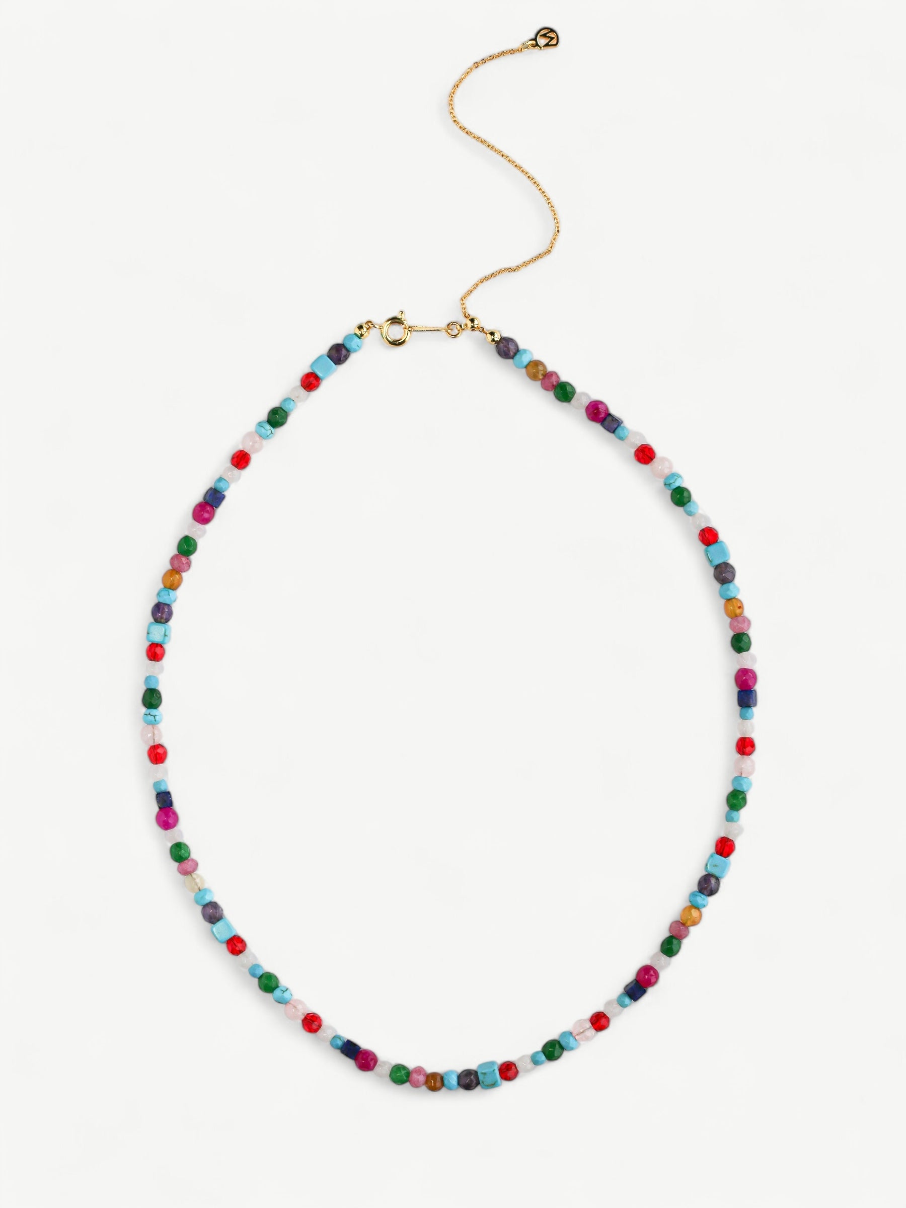 Experience the delicate beauty and lively colors of Grazia's Natural Stone Necklace! Crafted with a beautiful combination of natural stones, this necklace brings a young and active feeling to any outfit. Add a fashionable touch to your look with Grazia!