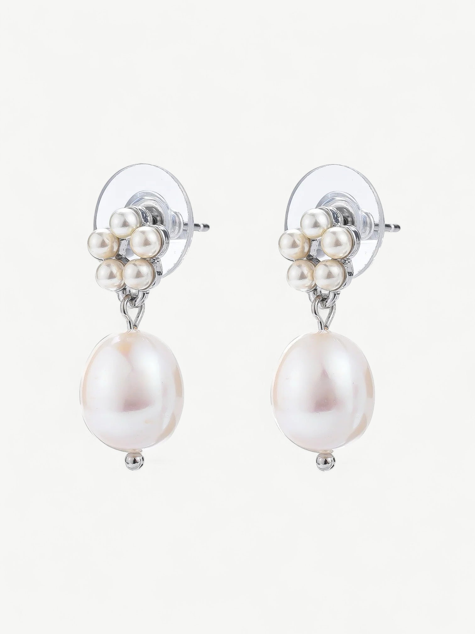Our pearl drop stud earrings are classic. Featuring natural white fresh water pearls, perfect to wear with any outfit. Made in white gold vermeil and featuring a highly polished finish, these earrings are suitable for any occasion and make a wonderful pair of wedding day earrings.