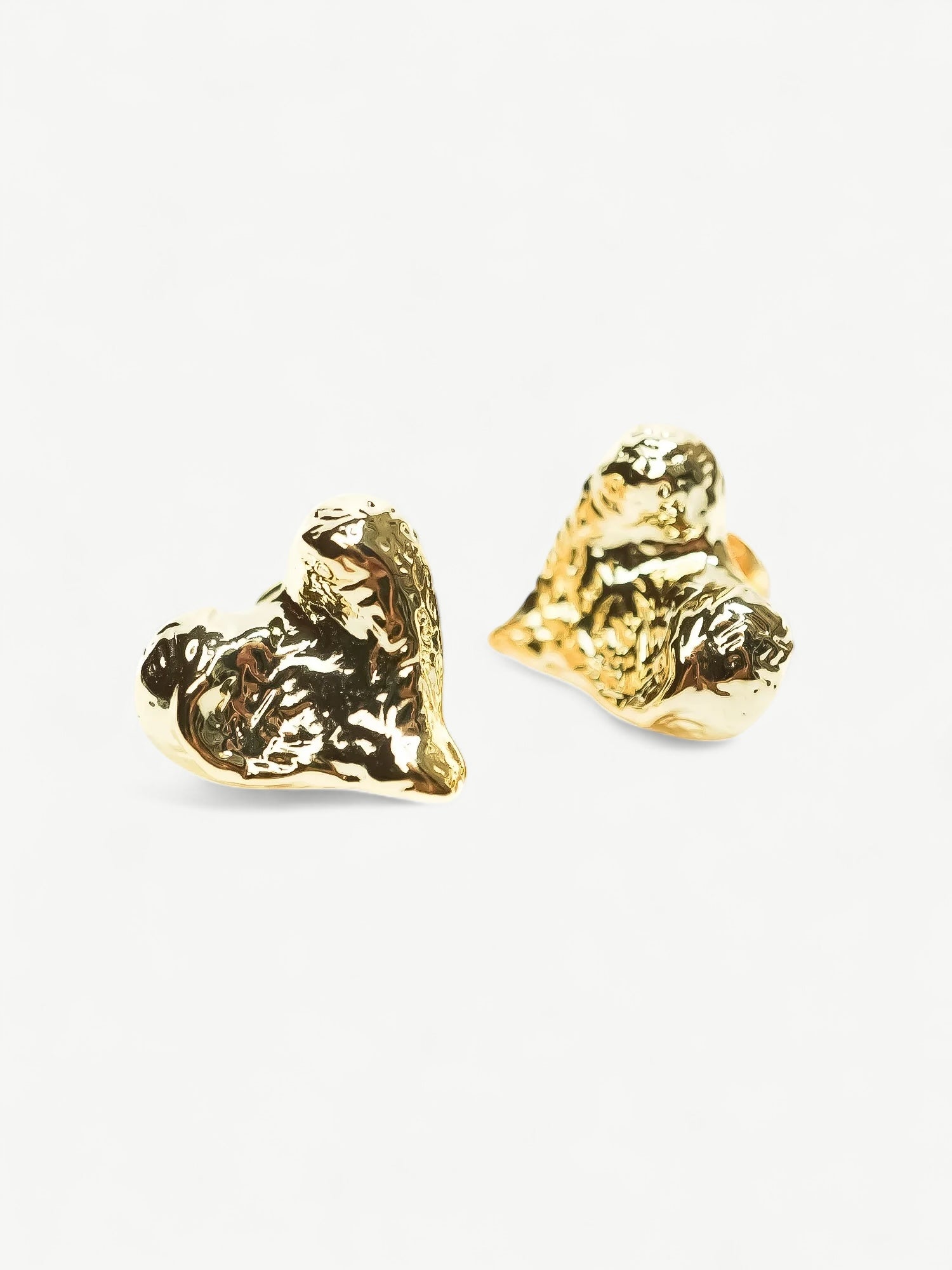 Fall in love with our Ivy Handcrafted Love Heart Ear Studs. Made with 18K gold, each stud is handcrafted to showcase a unique nature texture. Be a fashion icon and add these must-have earrings to your collection. Express your love and style with every wear.
