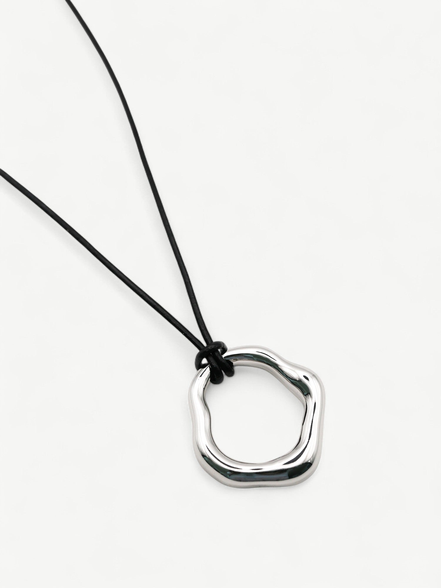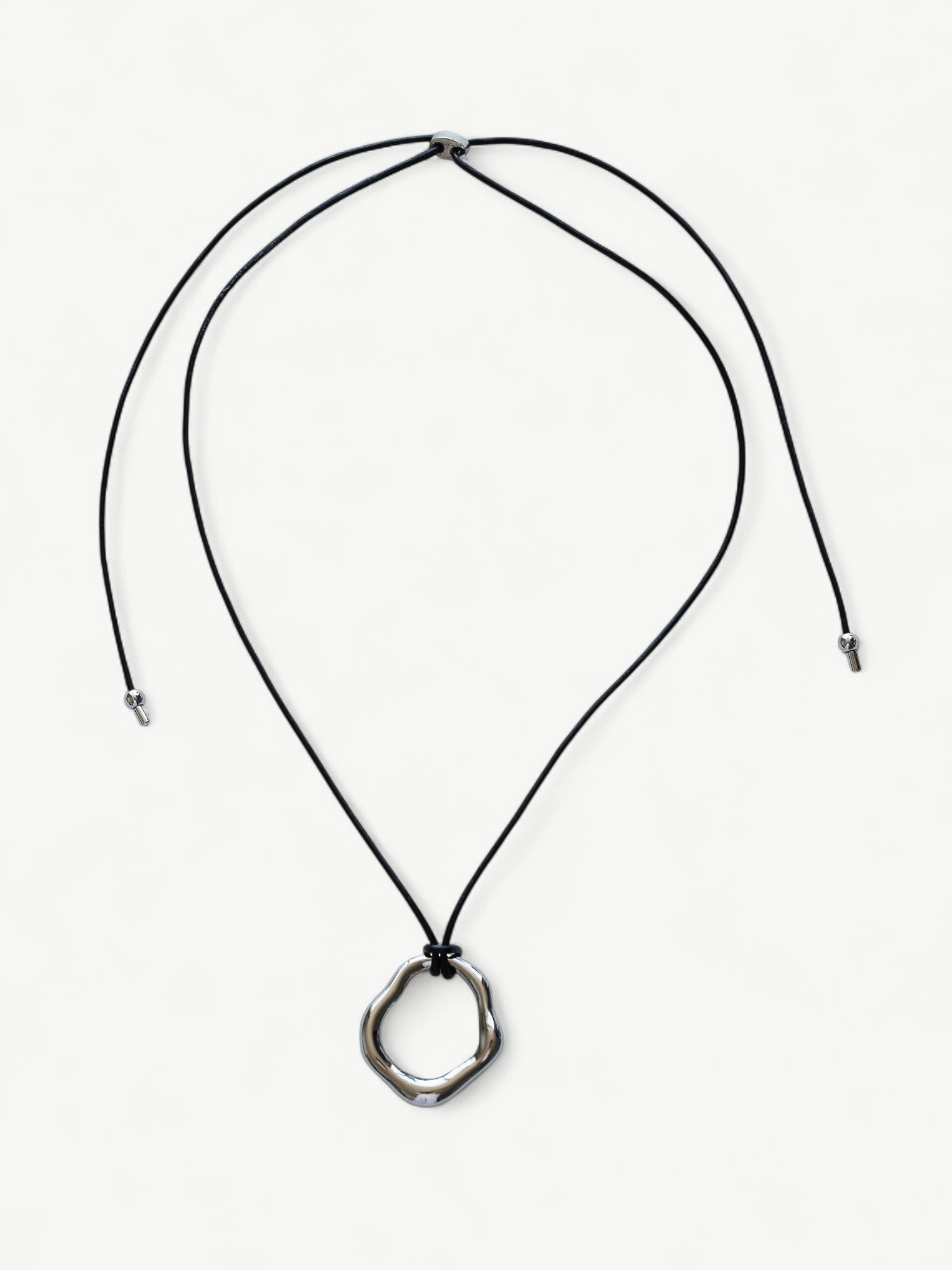 This Loop Necklace combines 18ct gold-plated brass with smooth, polished metal for a luminous finish. Its waxed real leather strap includes an adjustable feature, ensuring a perfect fit for any neckline. Designed for those who appreciate a clean, chic style, this accessory adds a subtle yet sophisticated touch to contemporary wardrobes.
