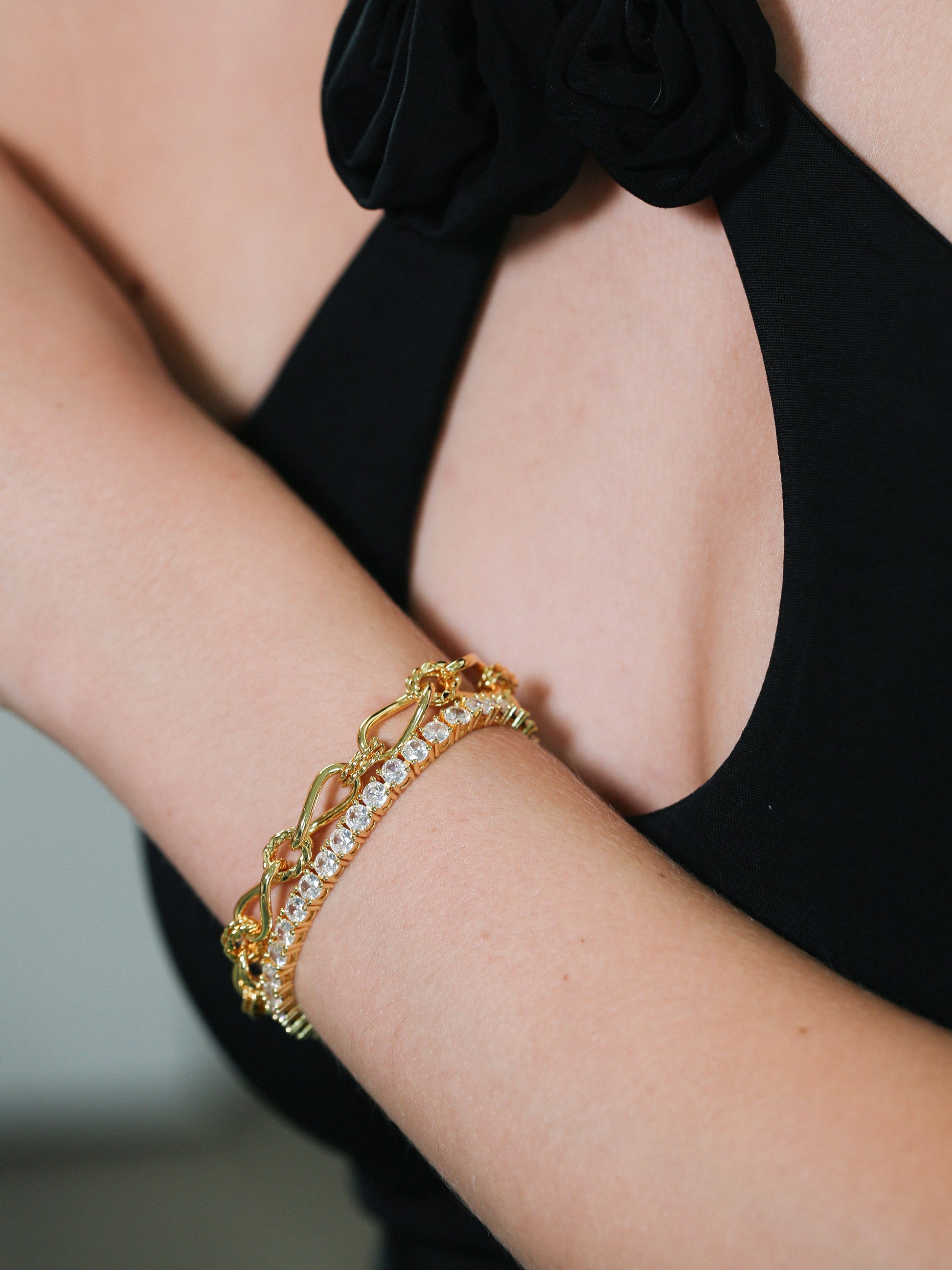 Does the tennis chain always flip over and bother you ? Our Lumi Classic Tennis Chain Bracelet features a durable and lightweight design that prevents flipping and keeps the stones facing outward for a stunning appearance. Its glamorous sparkle stones exude timeless elegance, and the bracelet is designed specifically for tennis chains for a classic and enduring look.