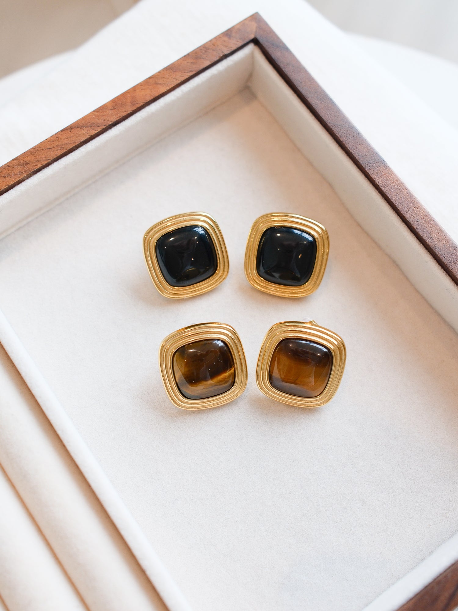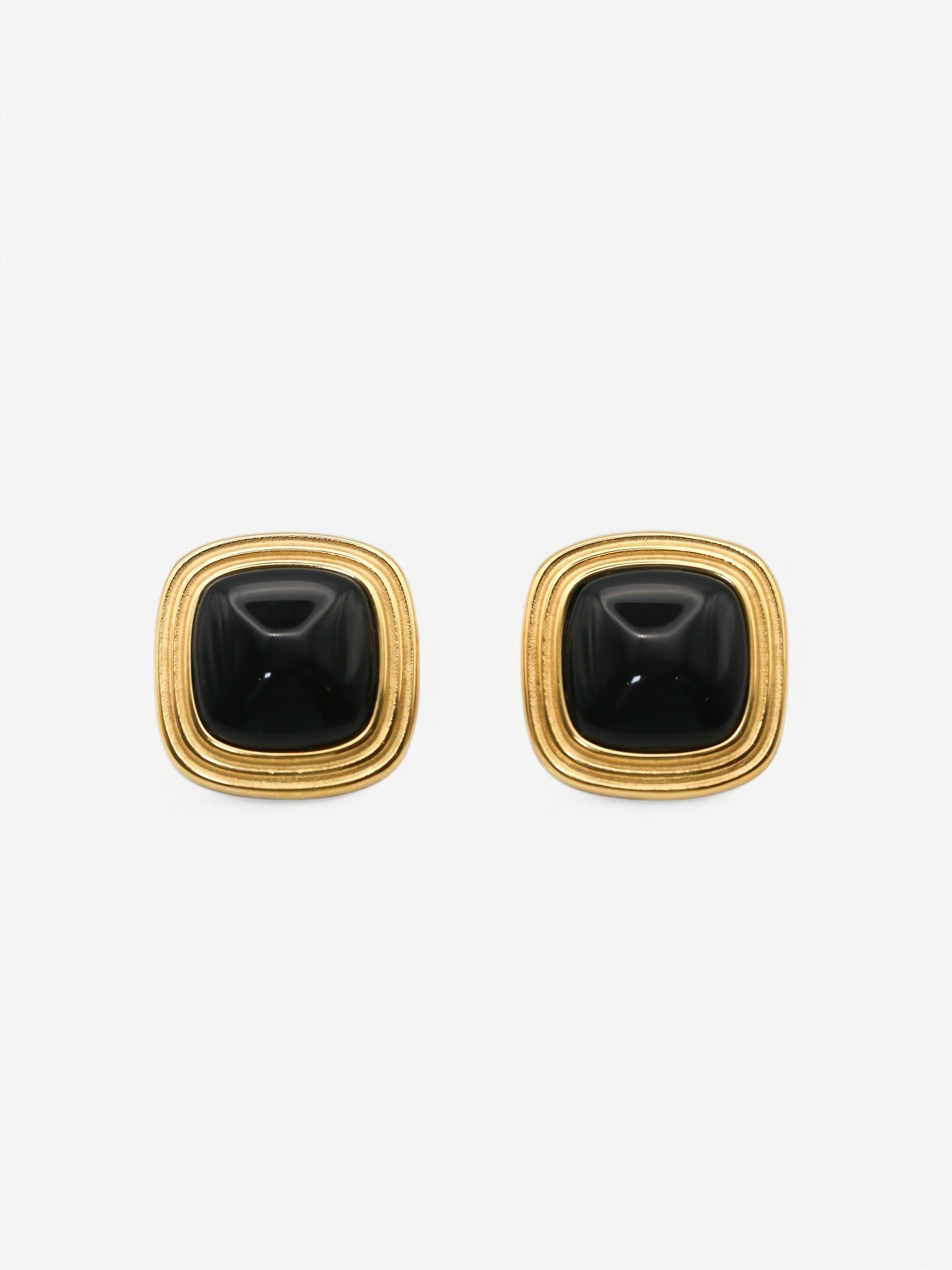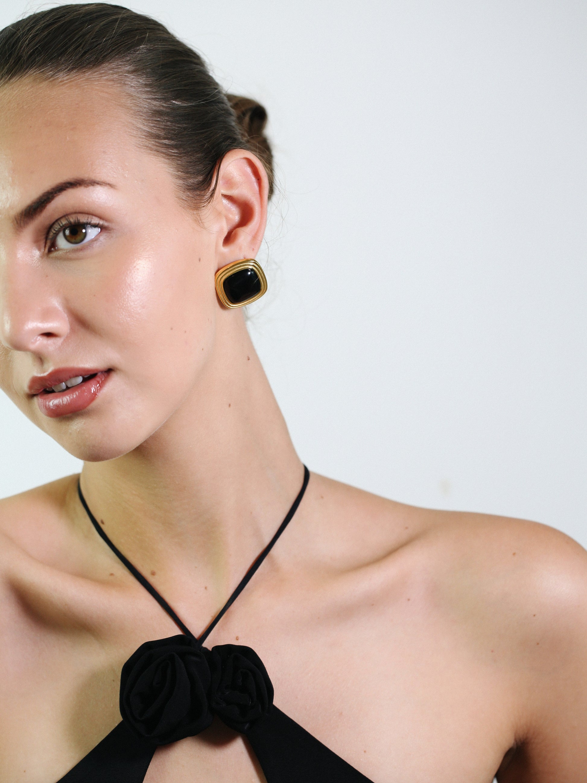 These Midnight Luxe Earrings feature sleek black onyx set in a refined gold frame. With elegance and mystery imbued into every piece, these earrings are a timeless addition to any outfit. Inspired by vintage designs, each earring is 18ct gold plated for a touch of luxury.