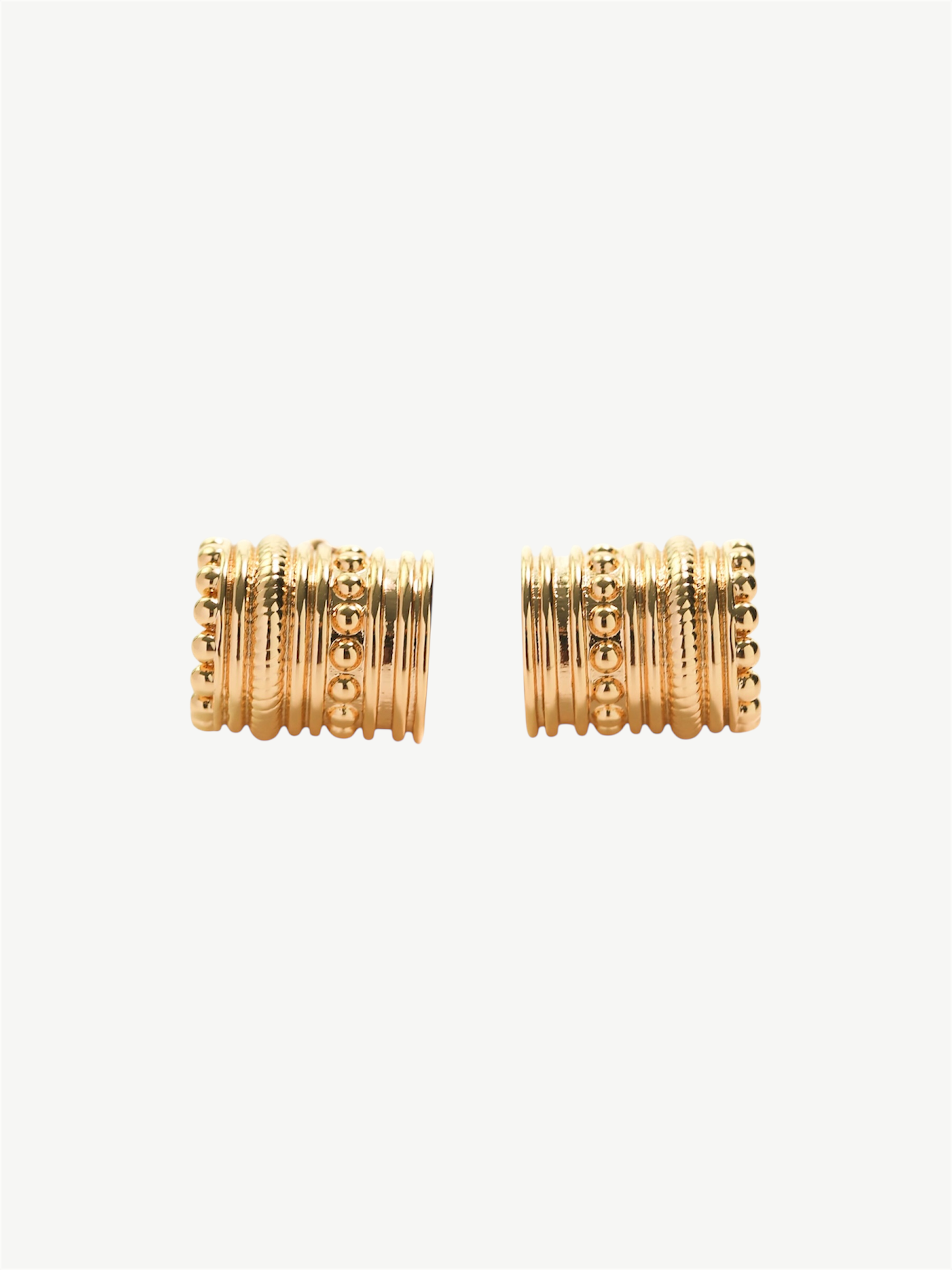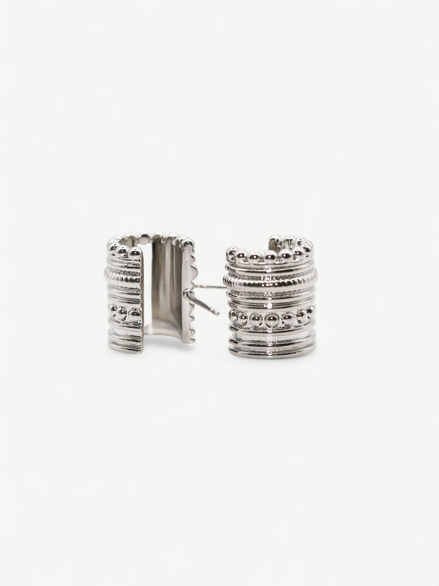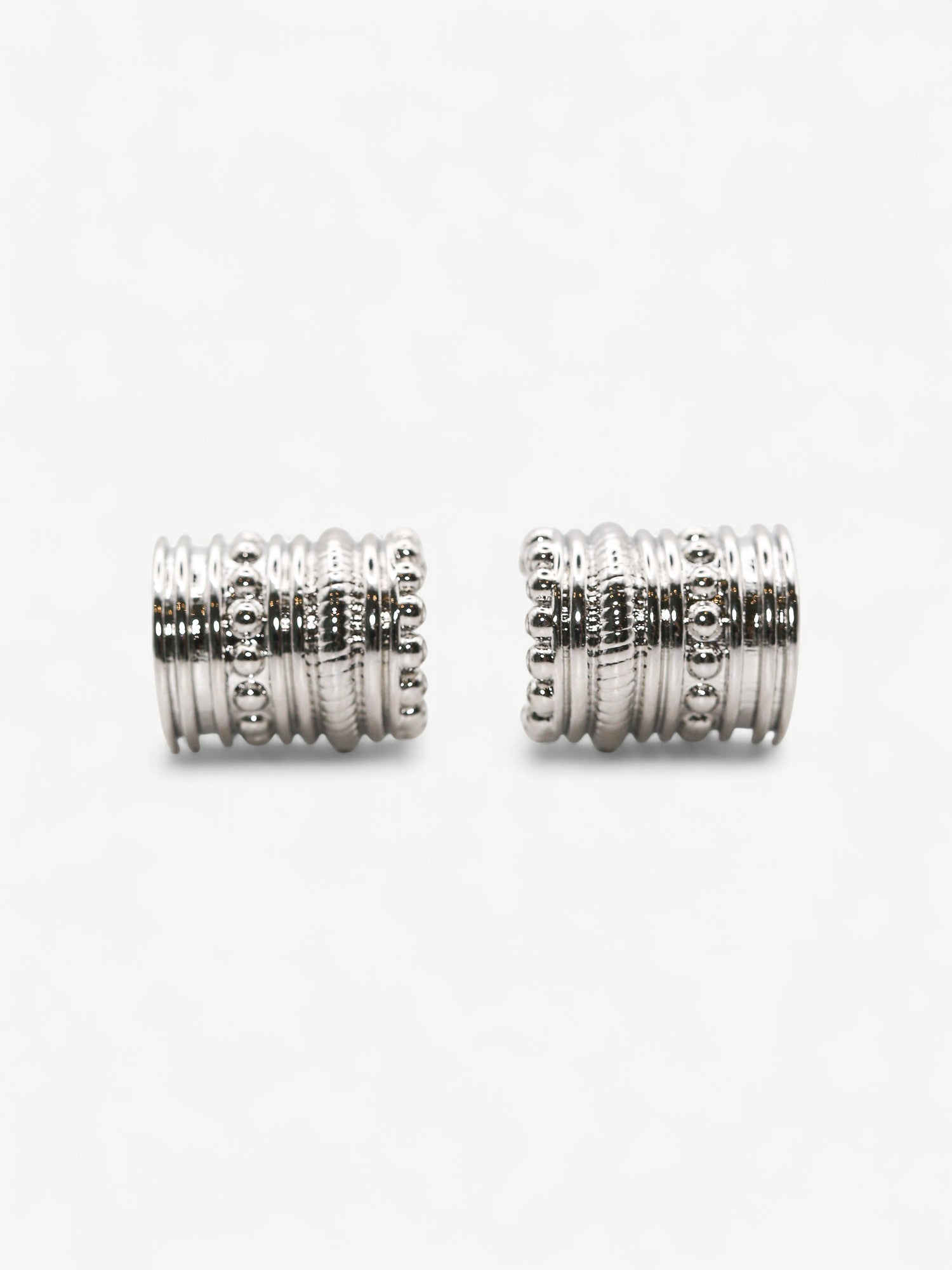 Orbis Studs showcase a sculptural ribbed and beaded texture that defines their unique modern design. These earrings blend architectural detail with chic minimalism, making them a refined accessory for contemporary styling. Their distinctive craftsmanship offers both visual depth and understated elegance, perfect for elevating everyday or special occasion looks.