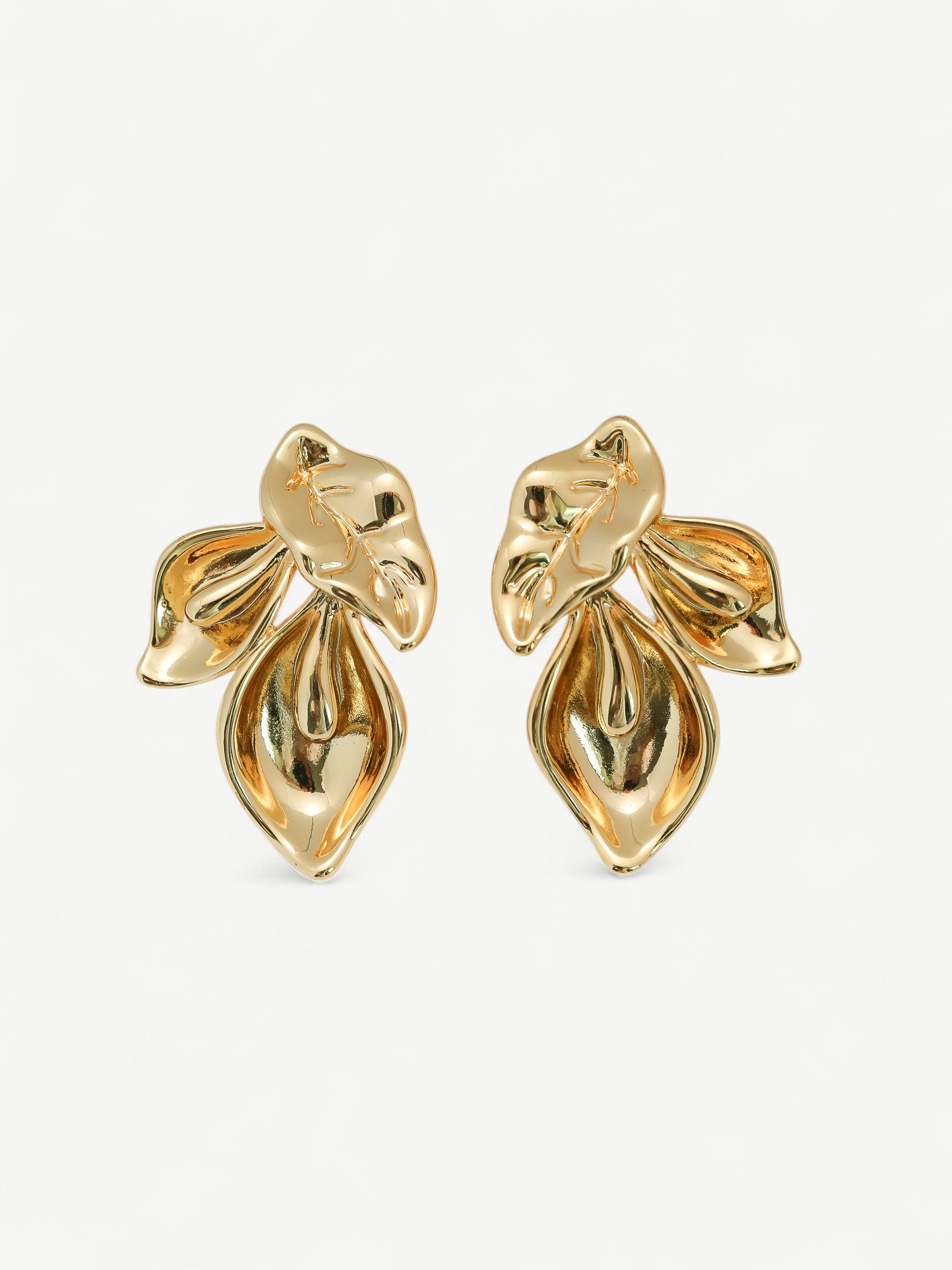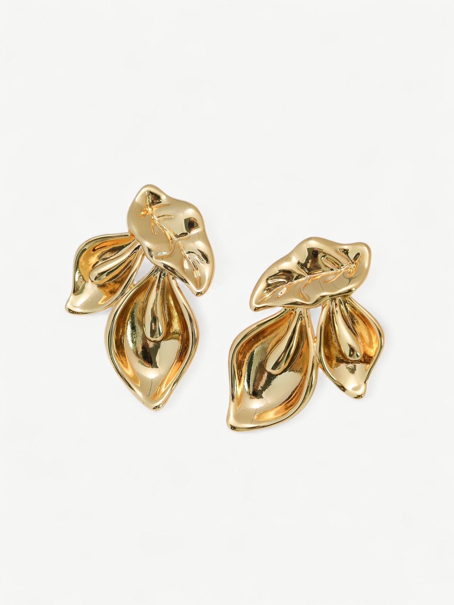 These Oversized Golden Leaf Ear Studs feature a beautifully crafted leaf design, expertly gold plated to offer a luxurious finish. As a statement piece, they bring a bold yet elegant touch to any outfit, perfect for those seeking to showcase refined taste with a nature-inspired flair. Their substantial size ensures they stand out, making them an ideal accessory for both day and evening wear.