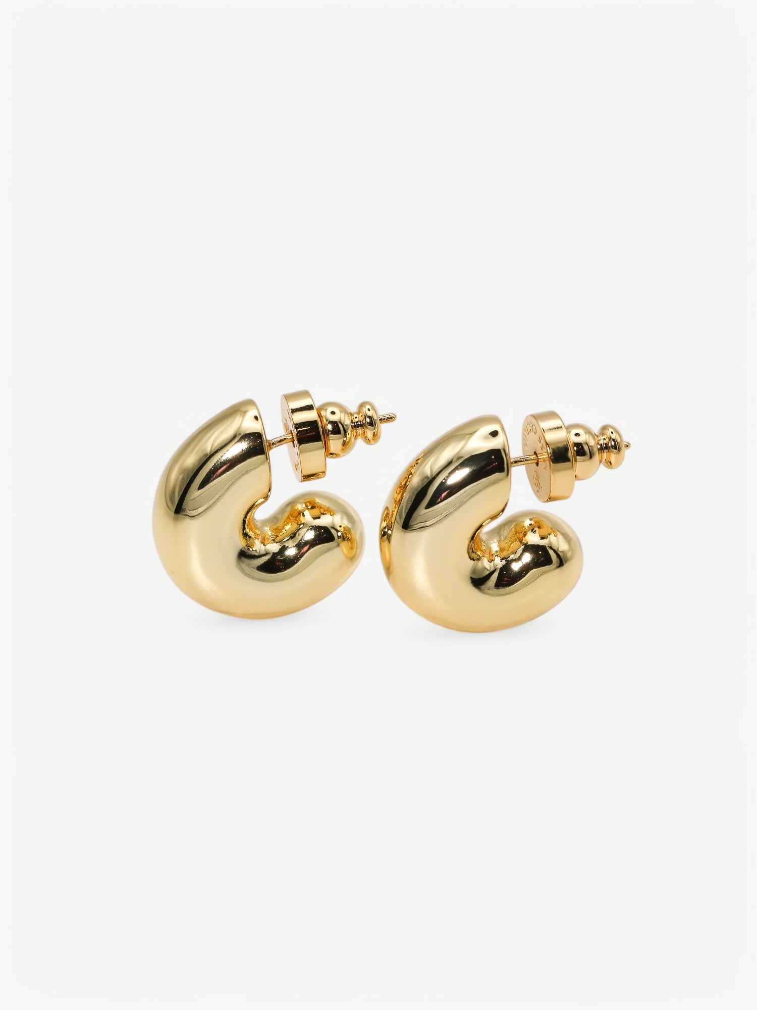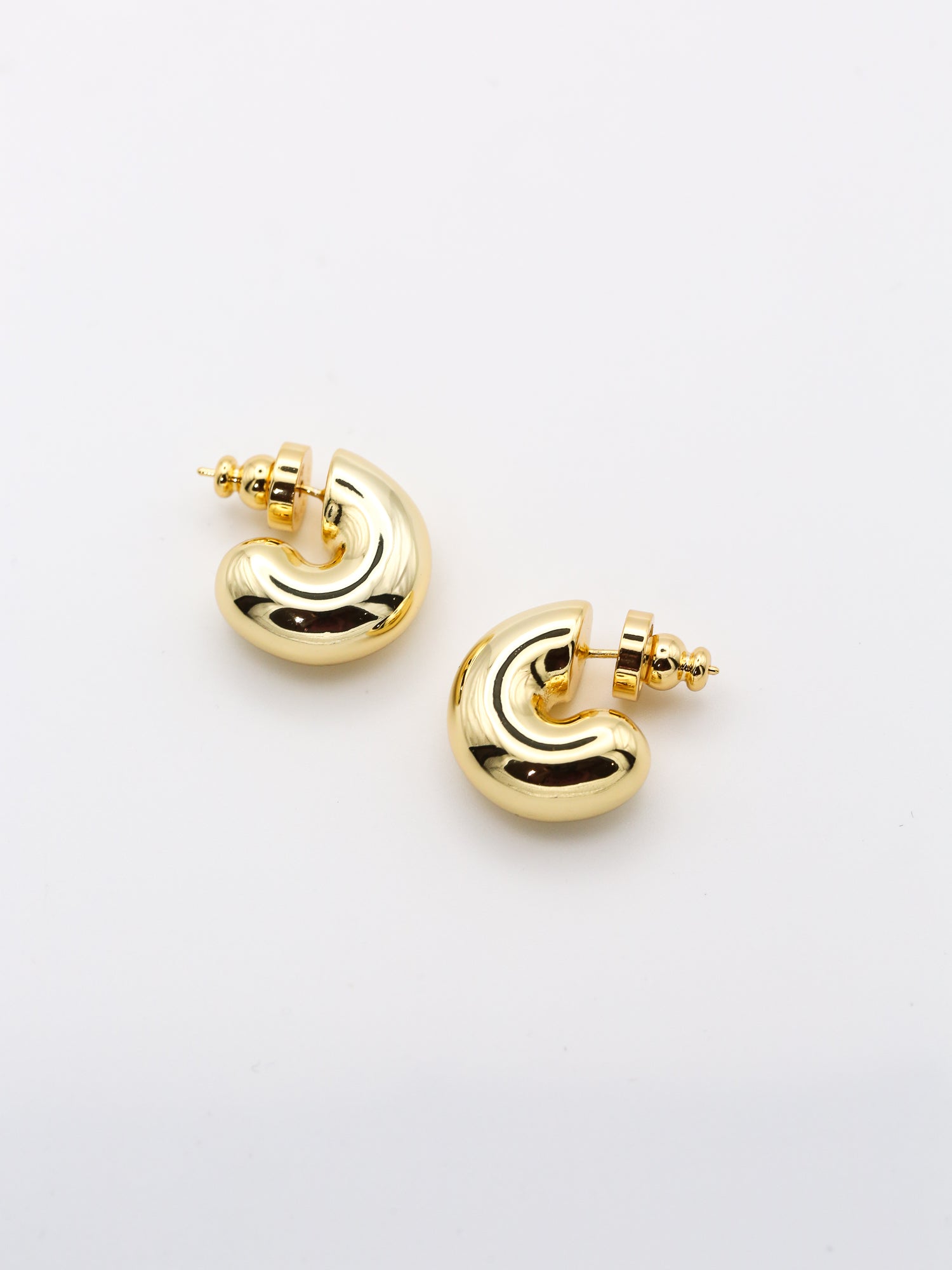 Elevate your style with our Puffy Hoops. The cute, puffy letter C design adds a touch of playfulness, while the chic, shiny 18k gold plating exudes elegance. Upgrade your accessories with these trendy hoops.