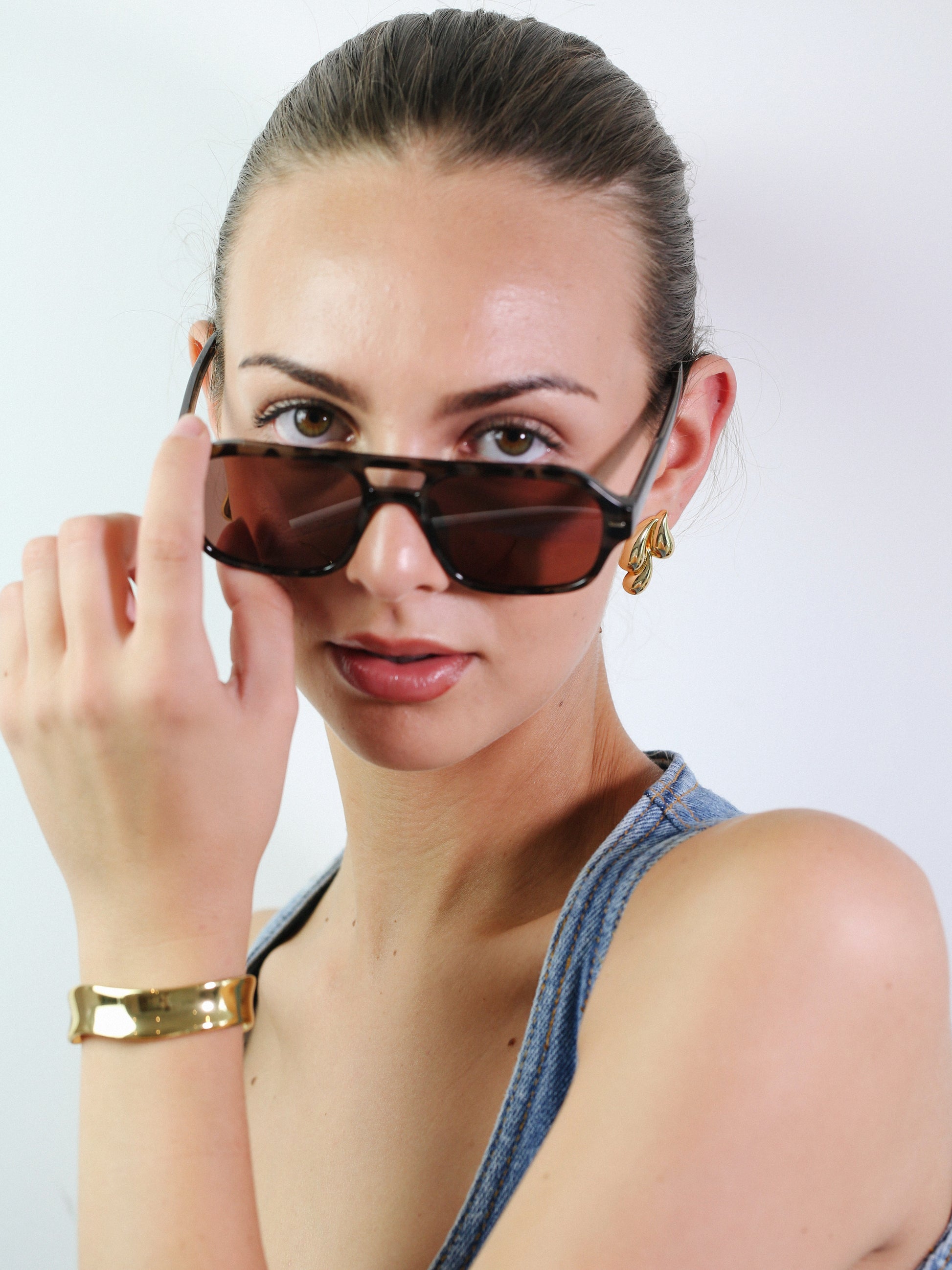 Expertly crafted from 18ct gold plated metal, these oversized stud earrings feature a stunning raindrop shape that exudes both style and elegance. Make a statement with this one-of-a-kind piece, guaranteed to elevate any outfit.