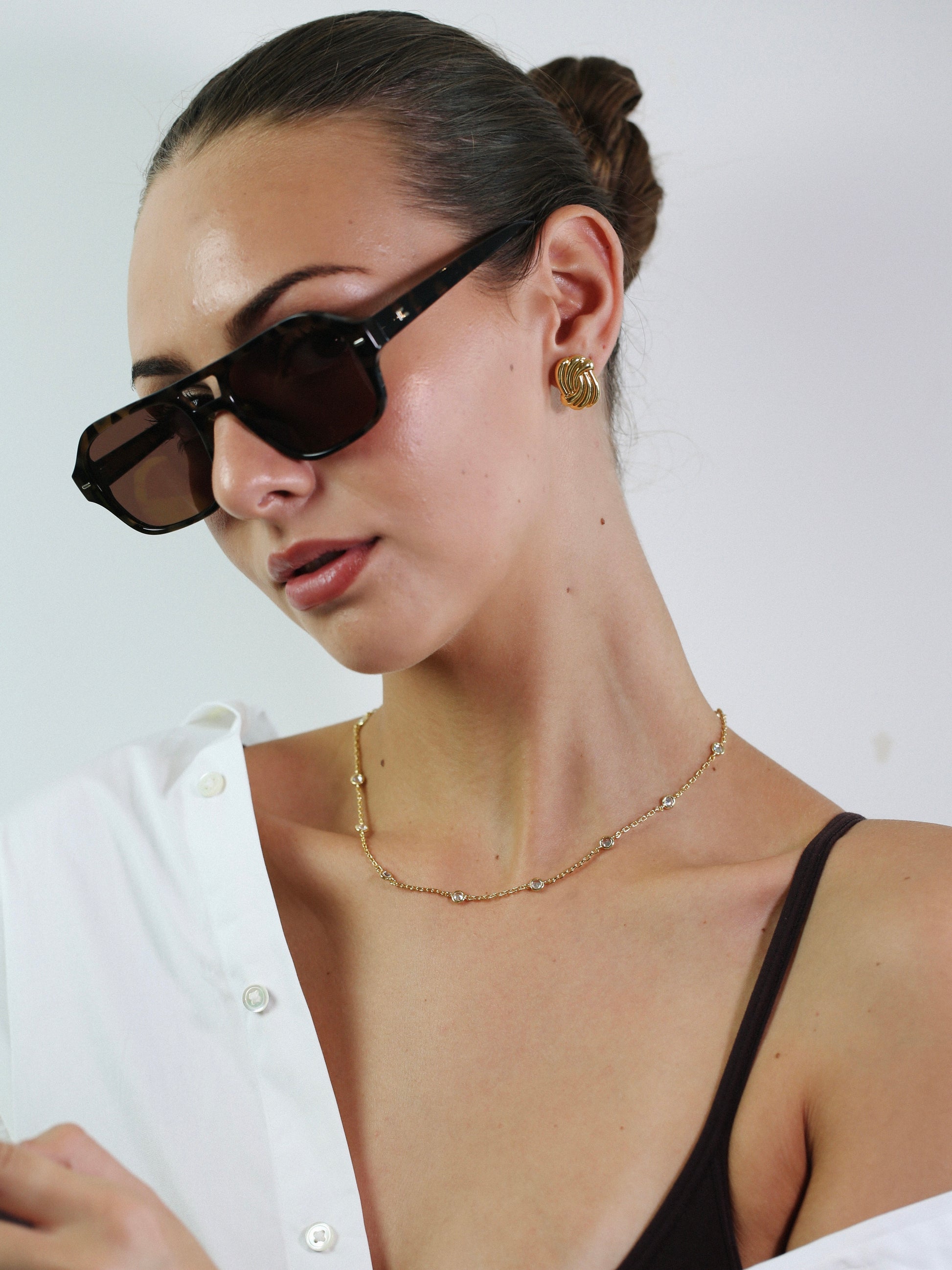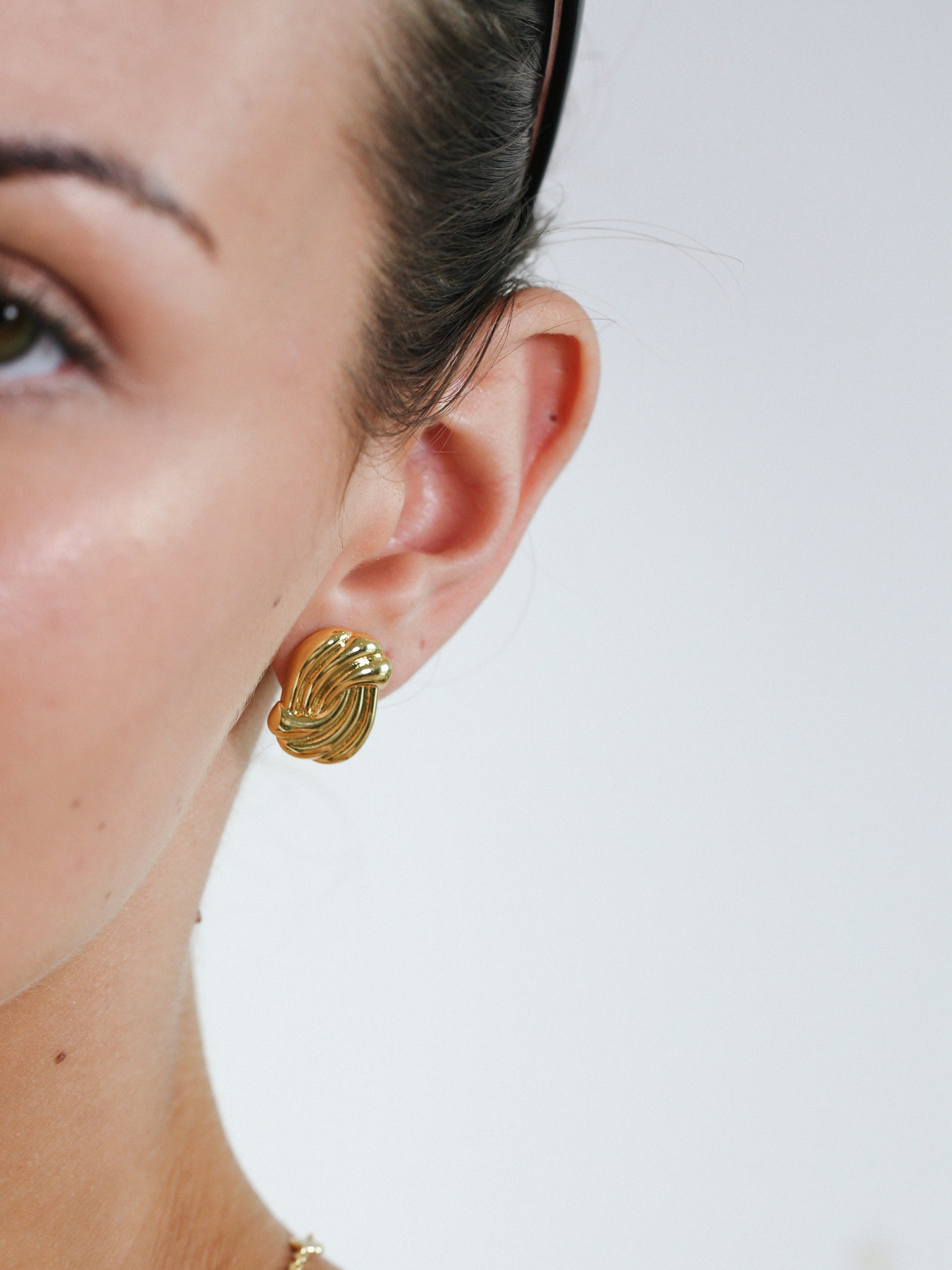 Enhance your style with the elegant Ridge Knot Stud Earrings. Crafted with 18ct gold plating and a fashionable knot design, these earrings are perfect for everyday wear. Lightweight and stylish, elevate your look with a touch of sophistication.