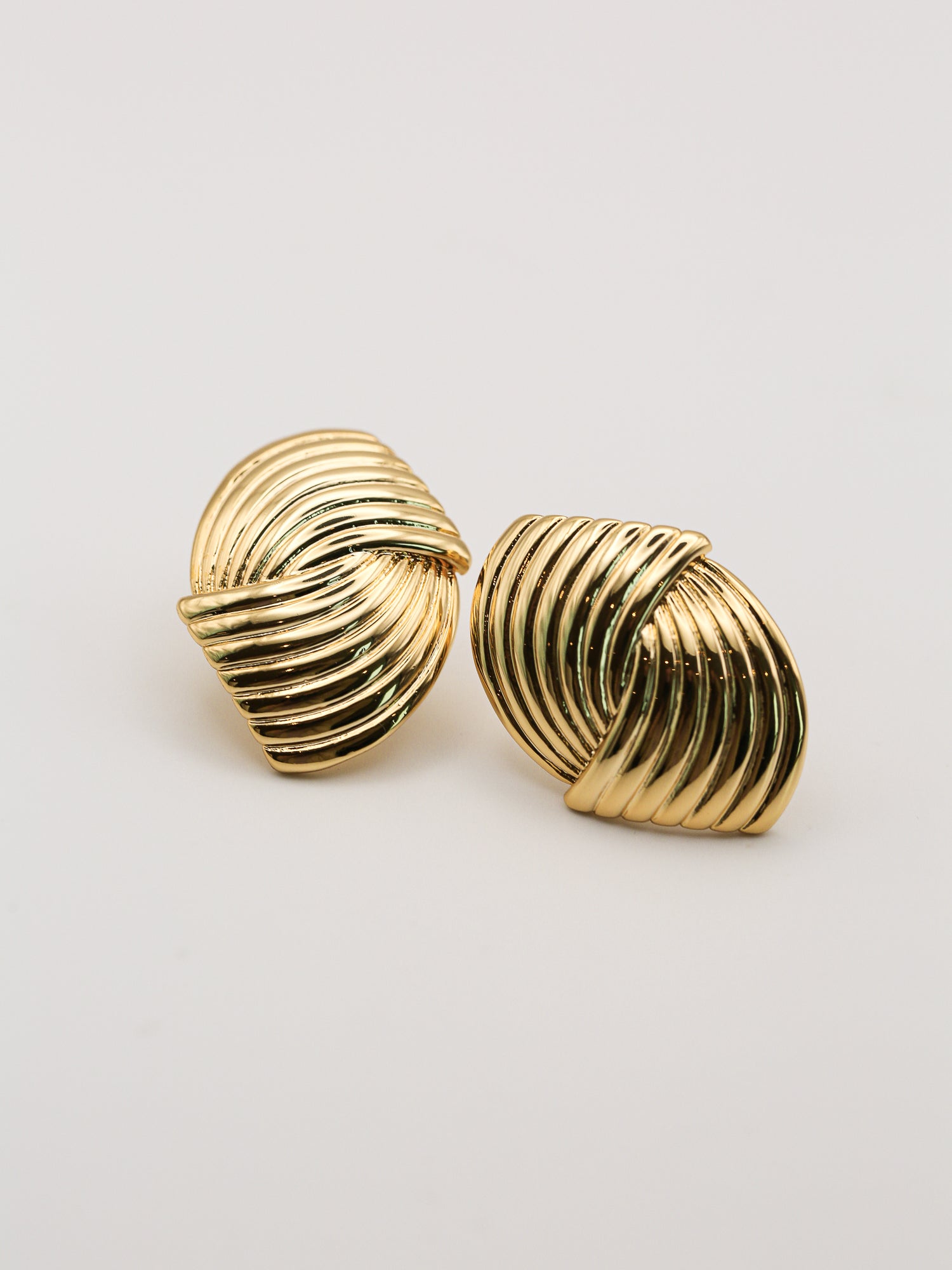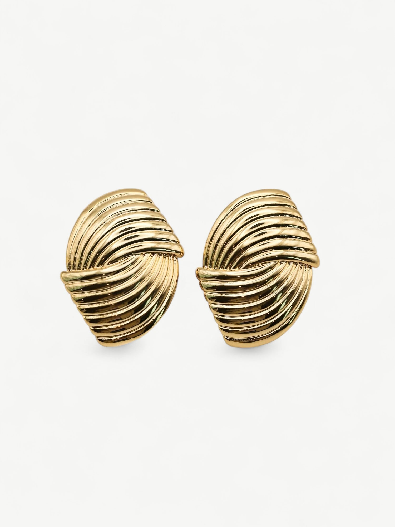 Elevate your style with Ripple Oversized Ear Studs. These fashionable, 18K plated gold studs are a long lasting, statement piece that features a unique ripple effect. Embody confidence and trendiness with these stunning earrings.