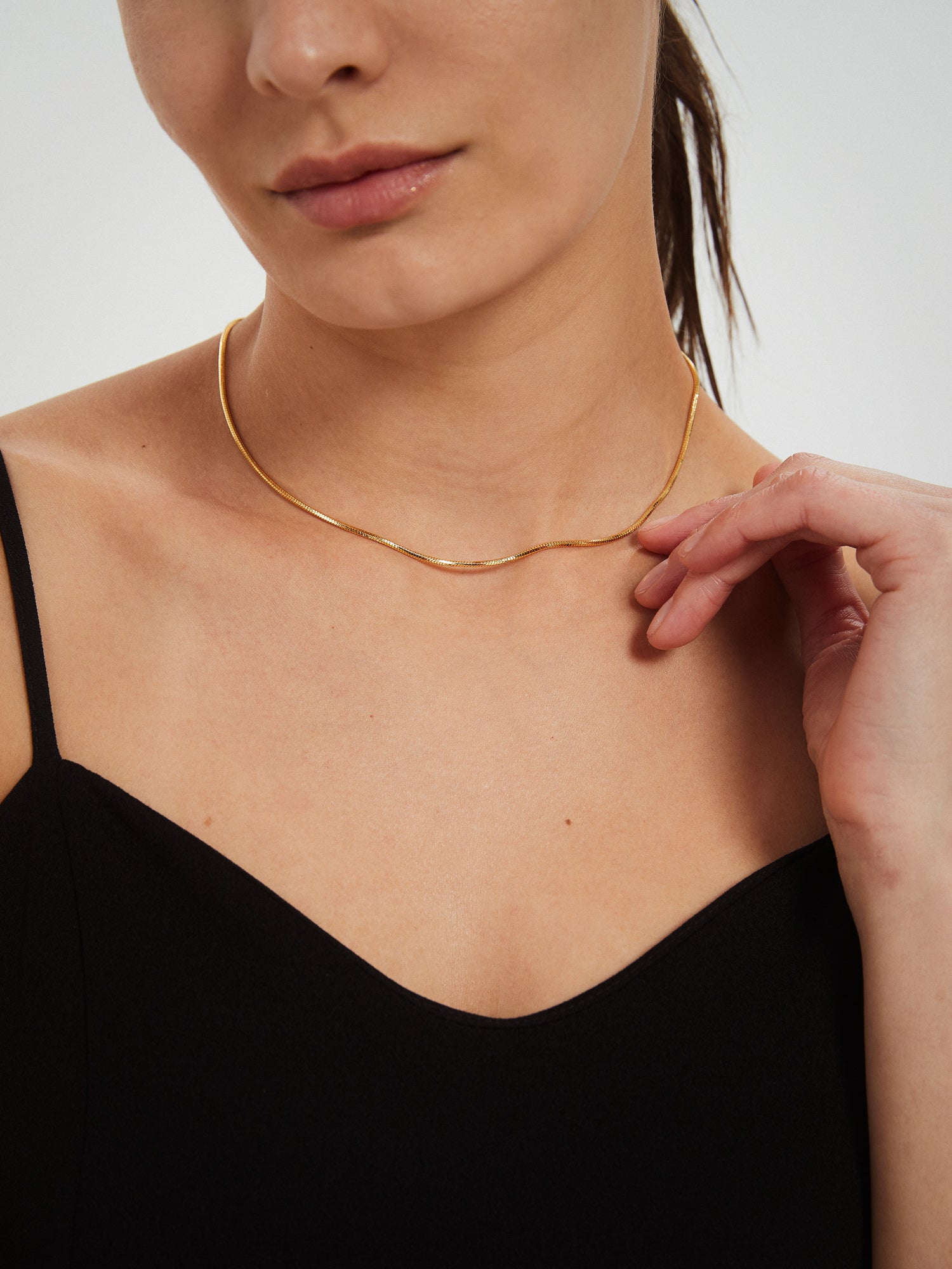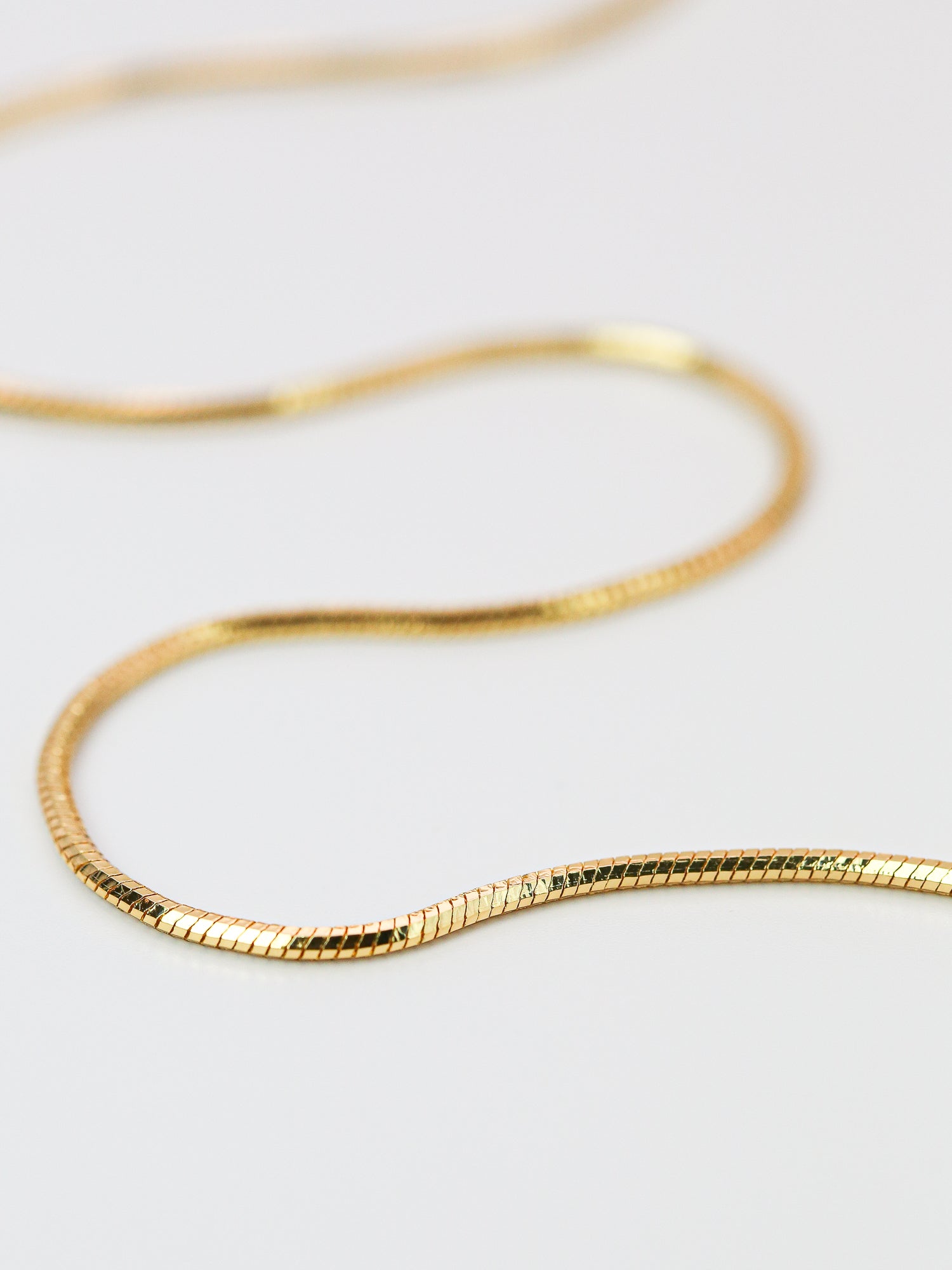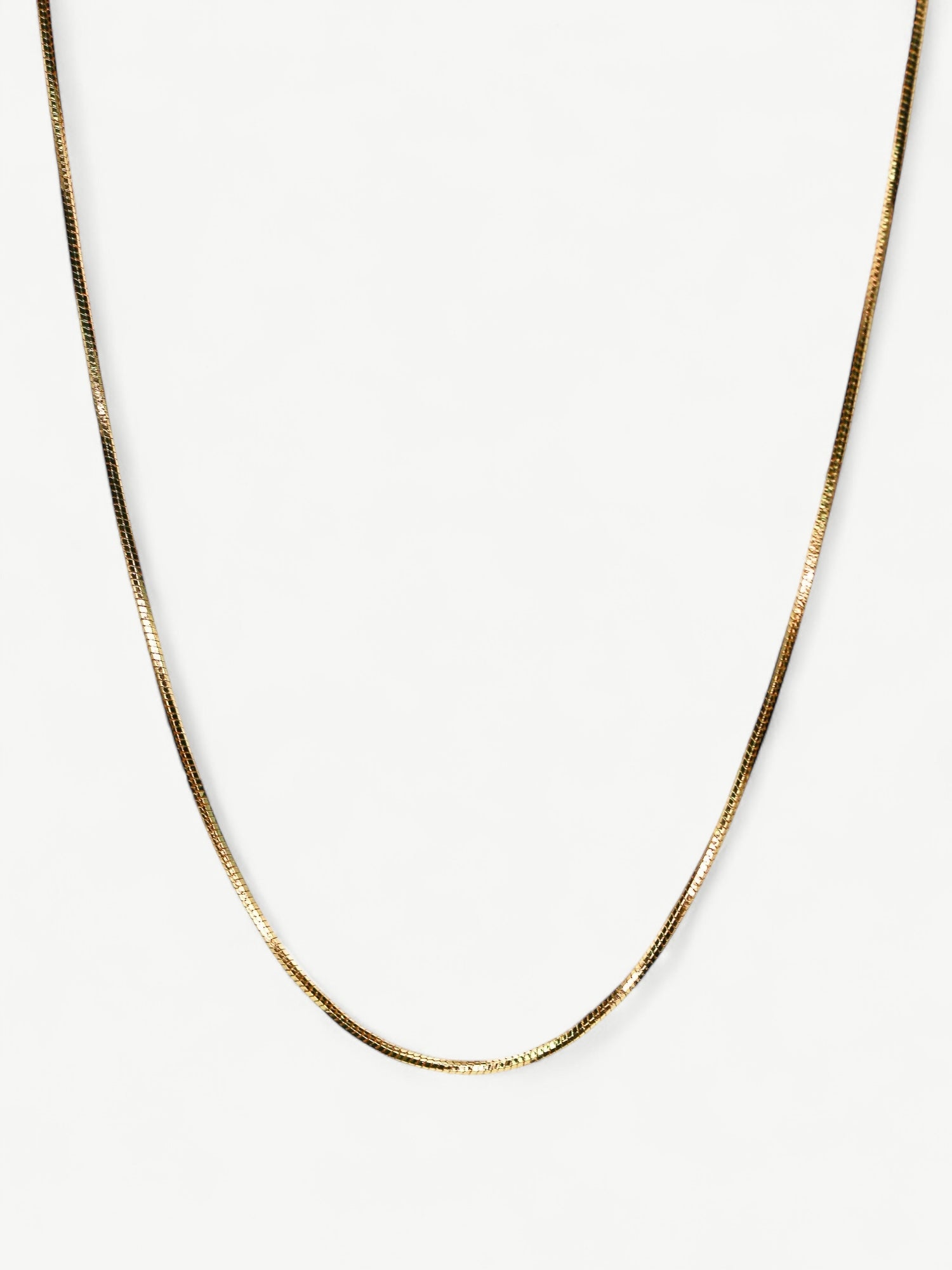 This Serpentine Chain Necklace is simple yet delicate, with six softly smooth sides. Perfect for wearing alone or layering with other pieces. Expertly crafted with 18k gold plating, it adds a touch of elegance to any outfit. Make a statement with this beautiful accessory.