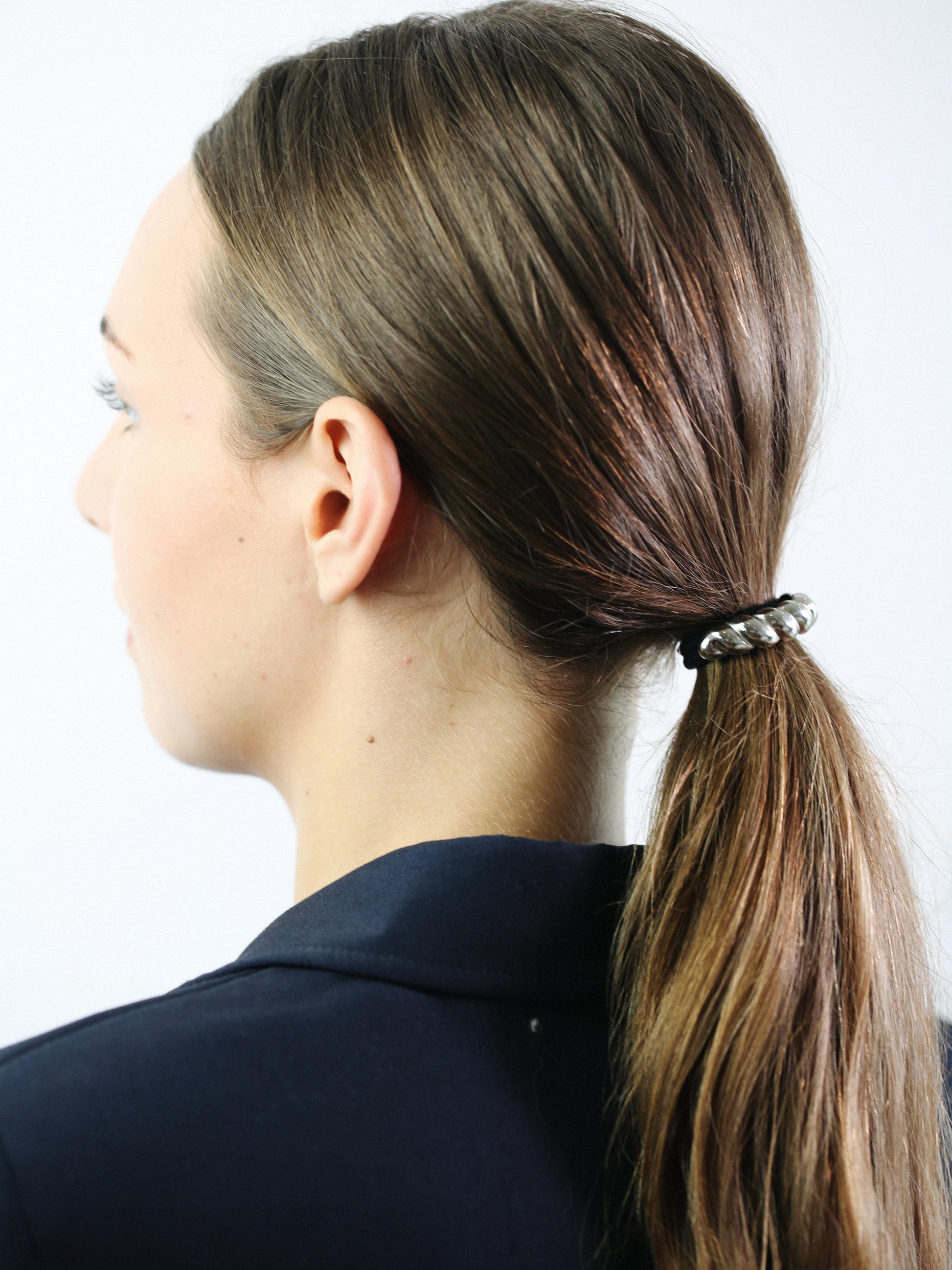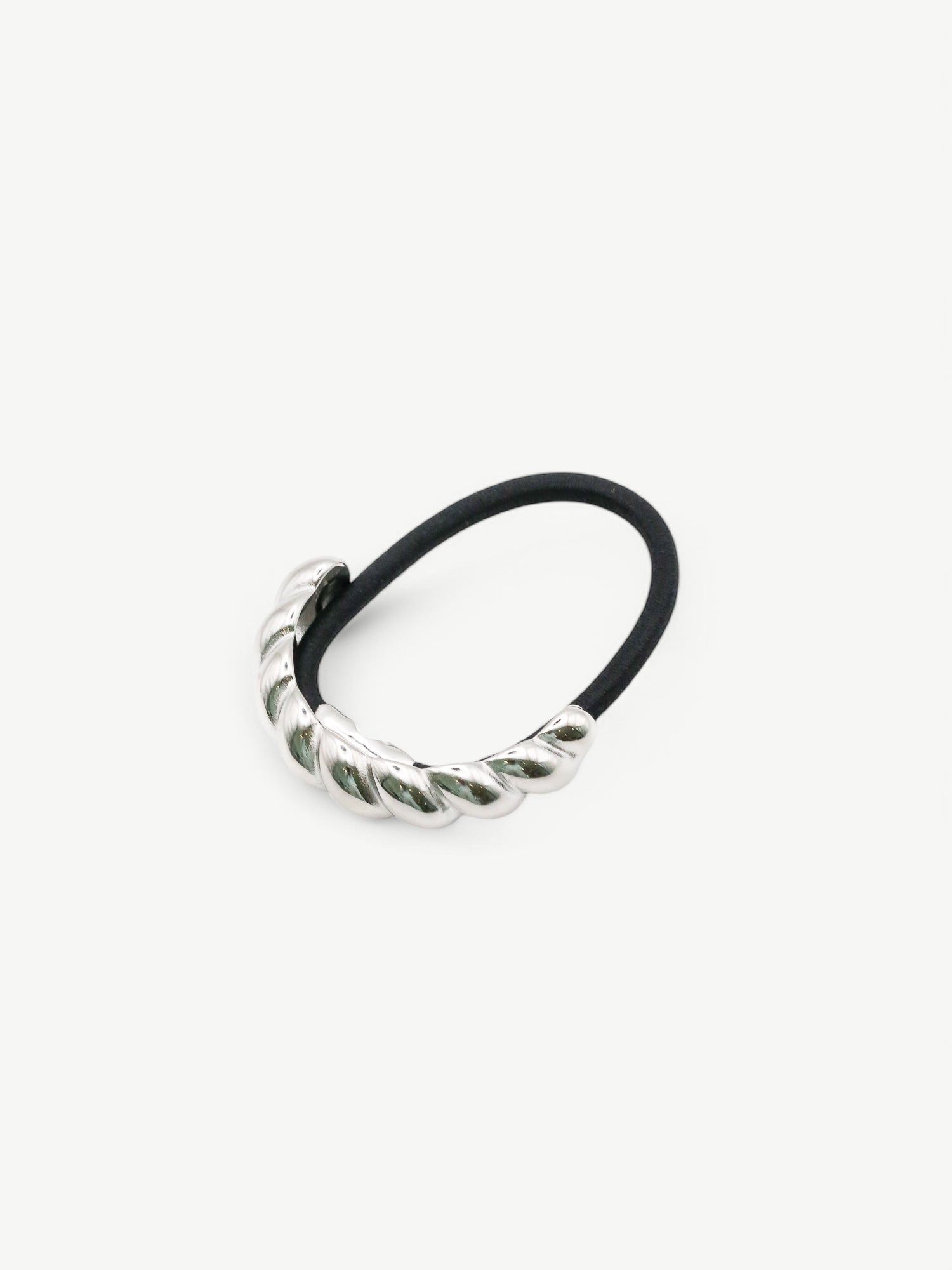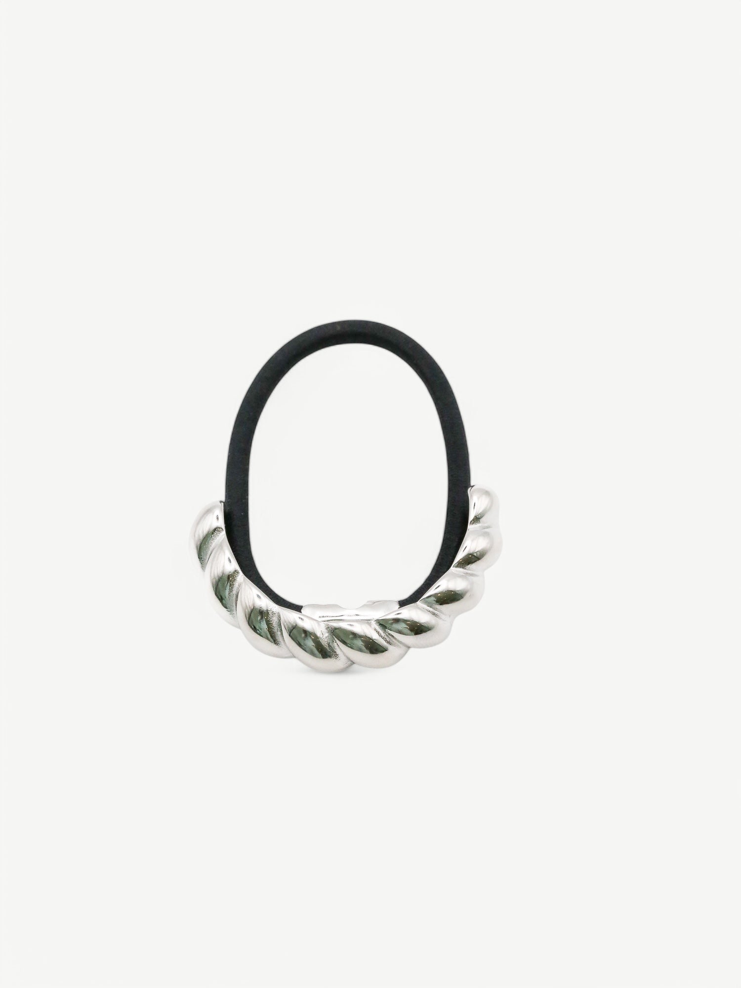 Expertly crafted with a white gold plate on durable stainless steel, the Silver Celine Hair Tie is perfect for everyday wear. Its waterproof design ensures lasting beauty and functionality.