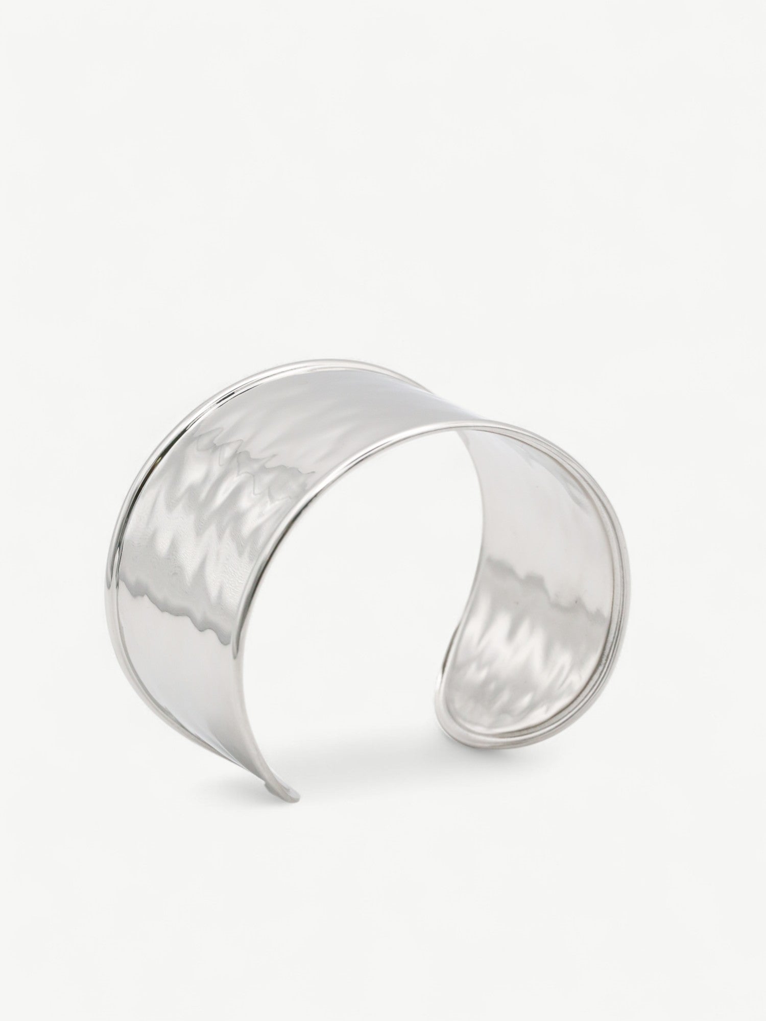 Crafted from stainless steel with a white gold plating, the Silver Muse Chunky Bangle offers durable, waterproof wear ideal for everyday use. Its modern, minimal design complements contemporary wardrobes effortlessly, making it a versatile accessory for both stylish city looks and relaxed holiday ensembles. This bangle combines lasting quality with understated elegance, perfect for those seeking a refined yet resilient piece.
