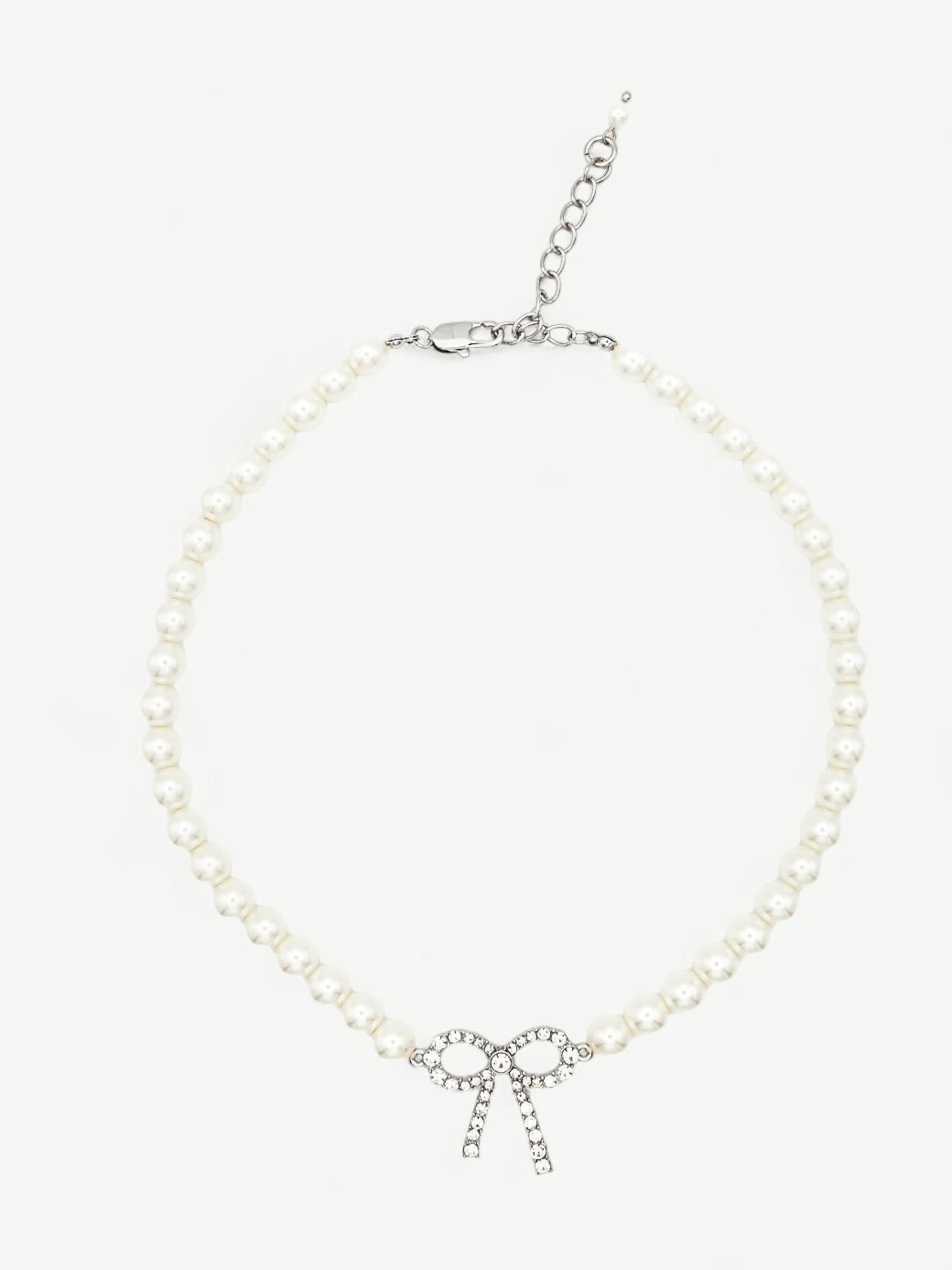 This Sofia Pearl Necklace is perfect for adding a touch of elegance to your everyday outfits or a special event. Crafted from high-quality materials, this bow and pearl necklace is both cute and stylish. Add the perfect finishing touch to your look with this timeless design.