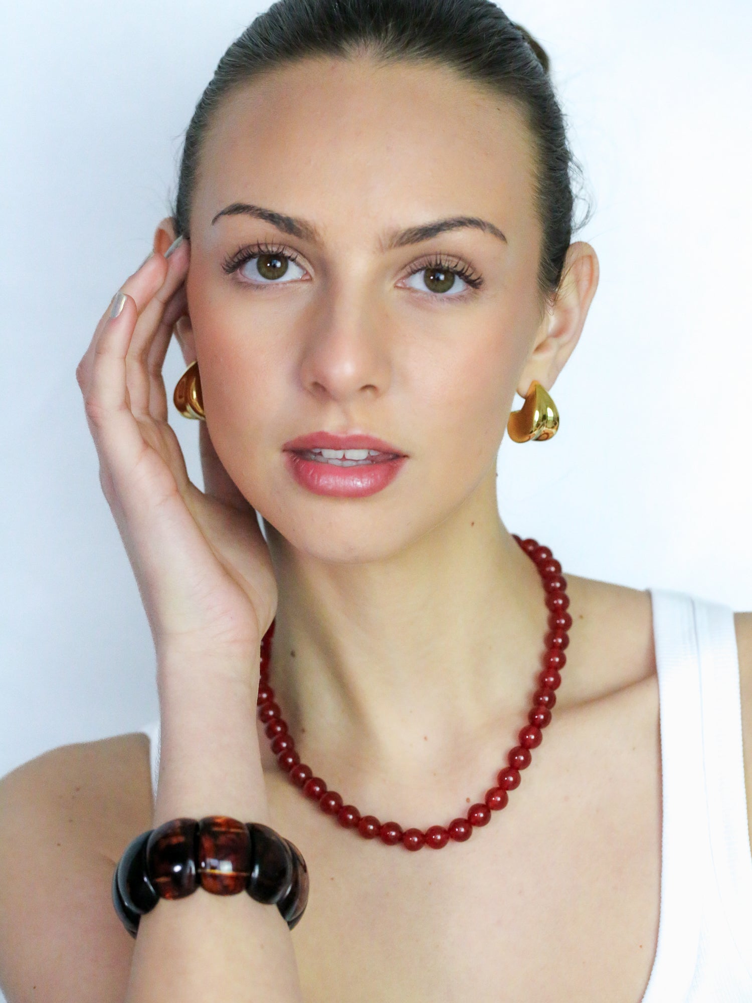 Our jewellery is sweatproof, waterproof, and heat-resistant. It’s hypoallergenic, scratch-resistant, and designed not to tarnish — made for everyday wear with no extra care needed.