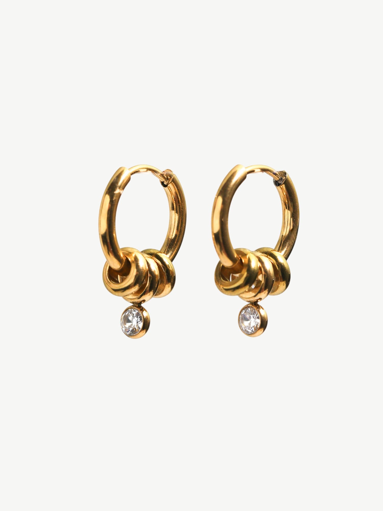 Delicate elegance meets everyday versatility with this charming Triple Loop Huggie. Three slender hoops layer seamlessly together, creating a sophisticated stacked effect that catches the light beautifully. Perfect for those who love understated luxury, this piece transitions effortlessly from day to night. The compact design hugs the ear gracefully, making it ideal for stacking with other earrings or wearing solo for a refined, minimalist look. A timeless addition to any jewellery collection that celebrates refined simplicity.